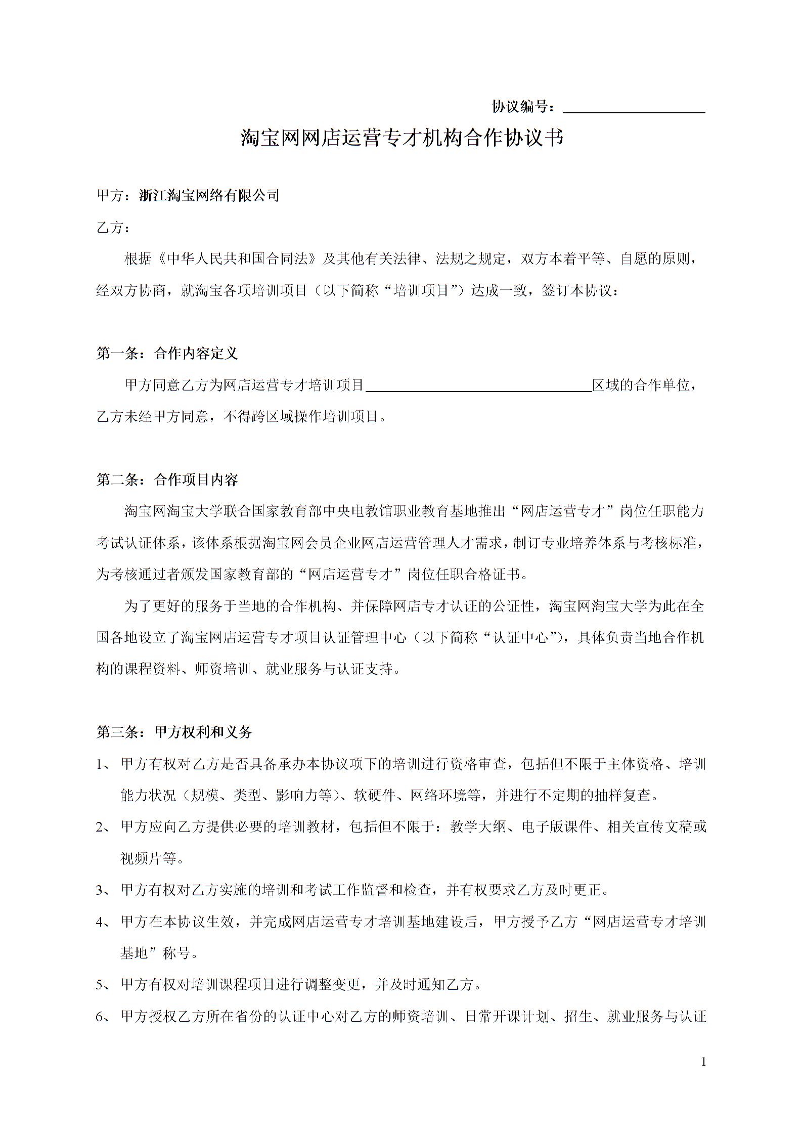淘宝网网店运营专才培训基地方案书目录03网才机构合作协议(标准版)