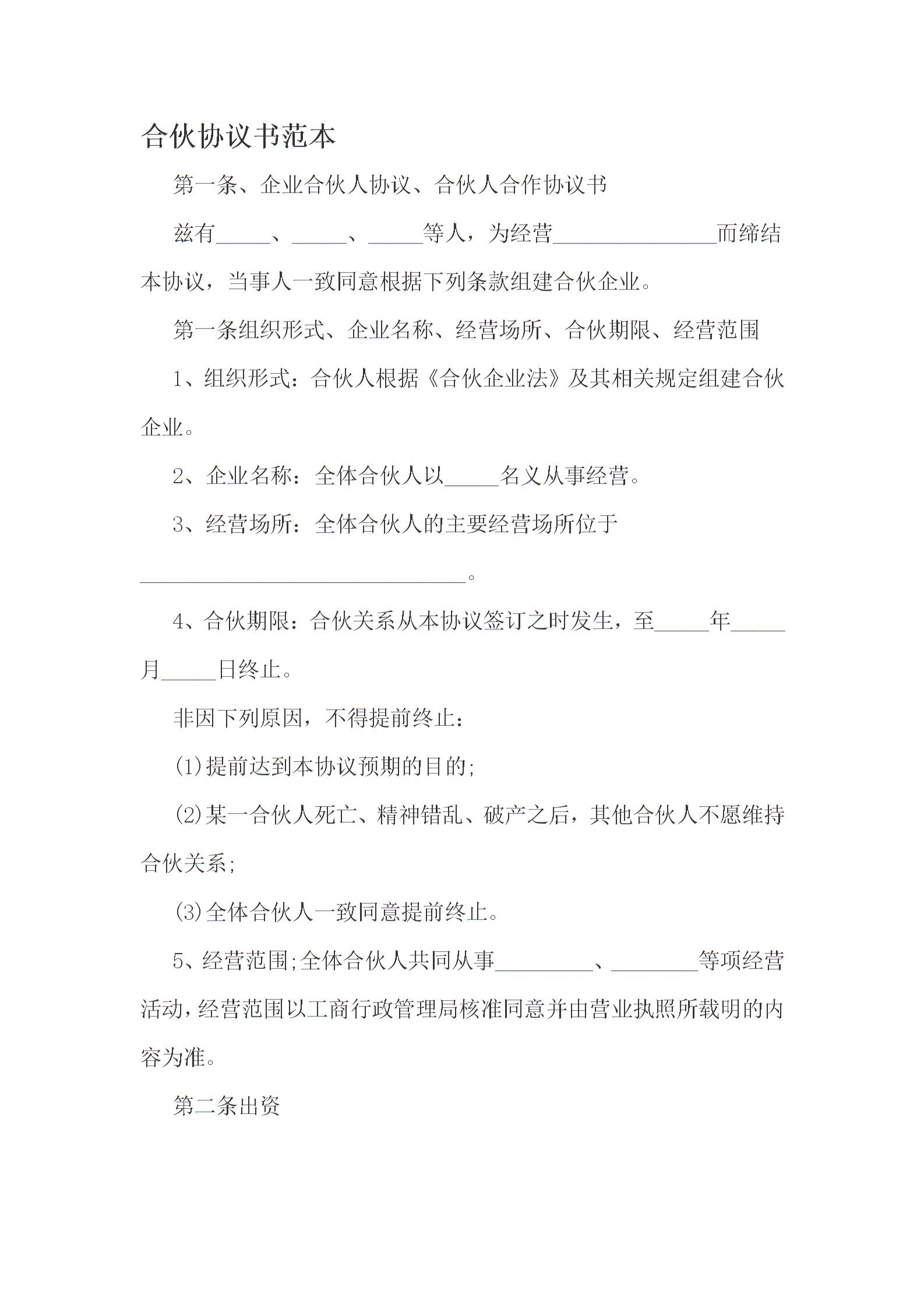 合伙经营合同书