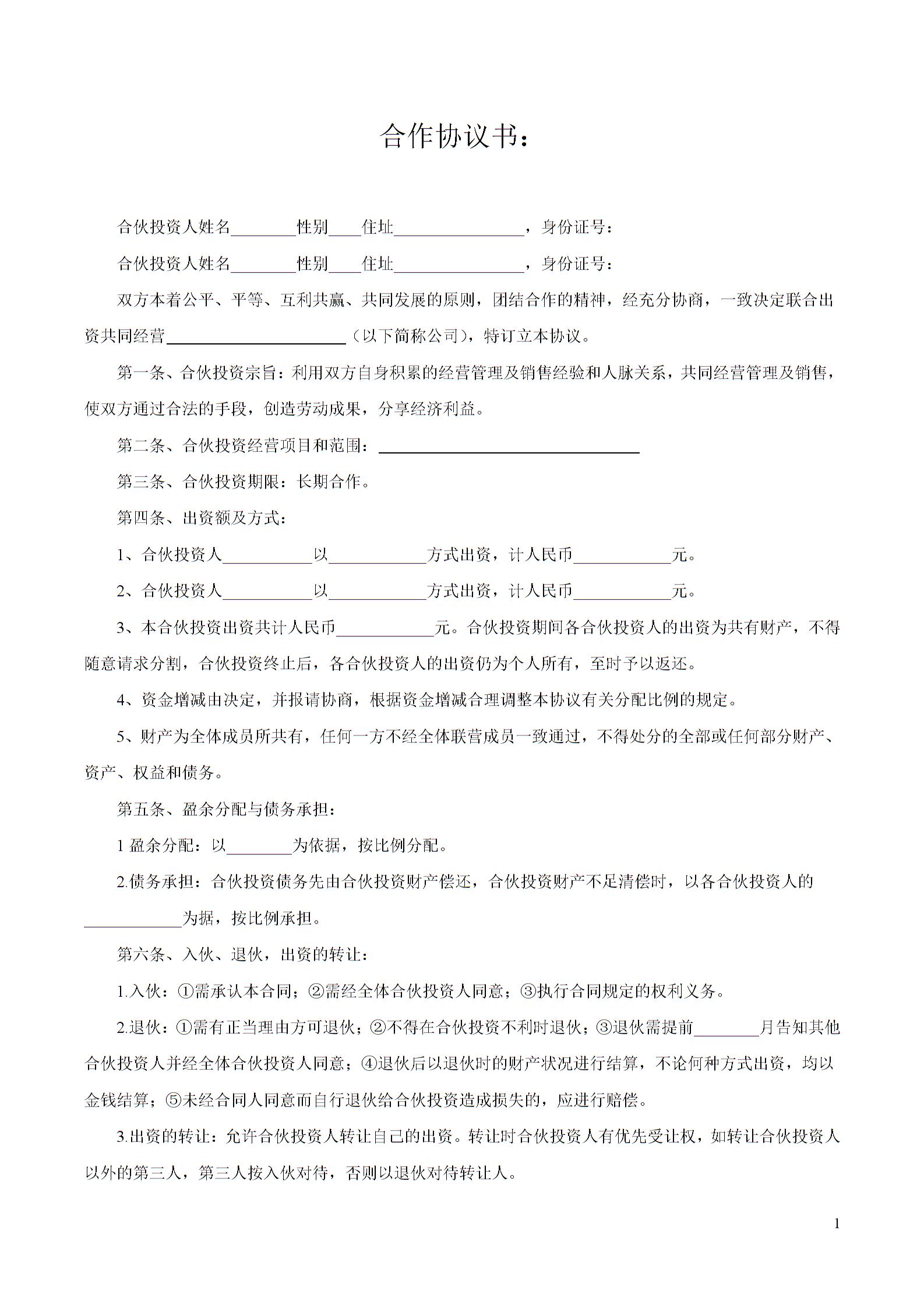 更多合作协议下载