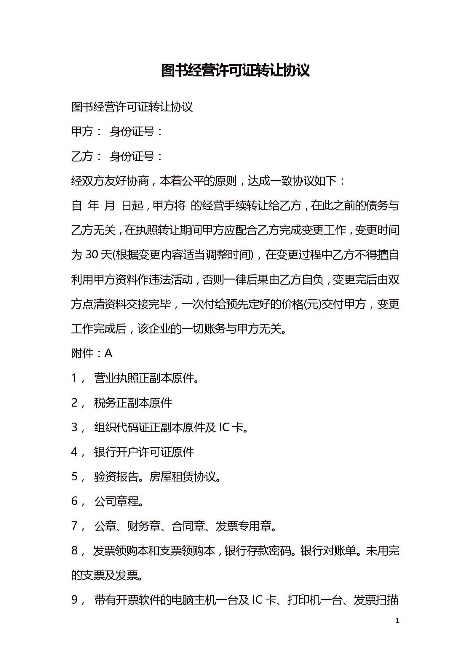 图书经营许可证转让协议
