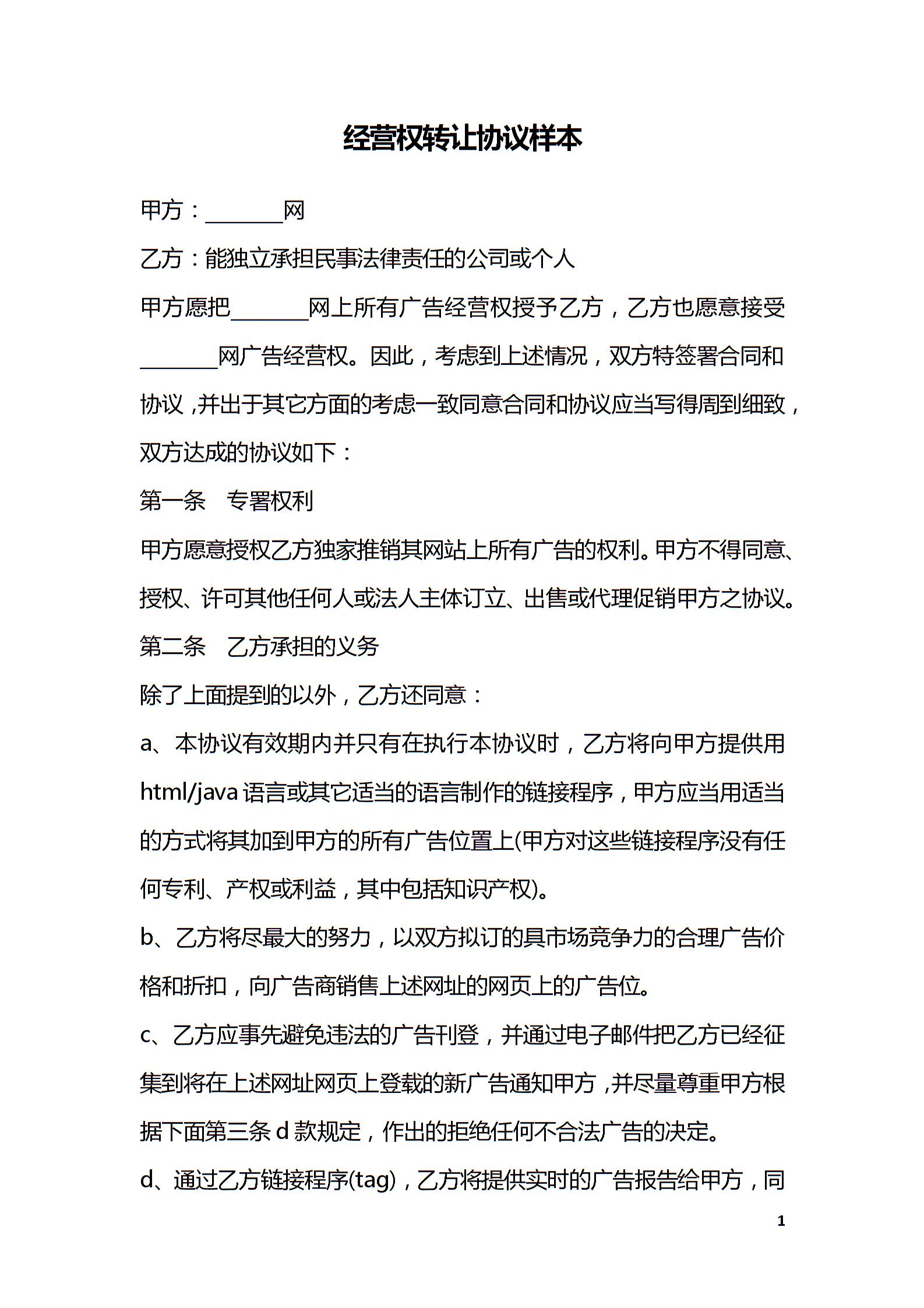 经营权转让协议样本