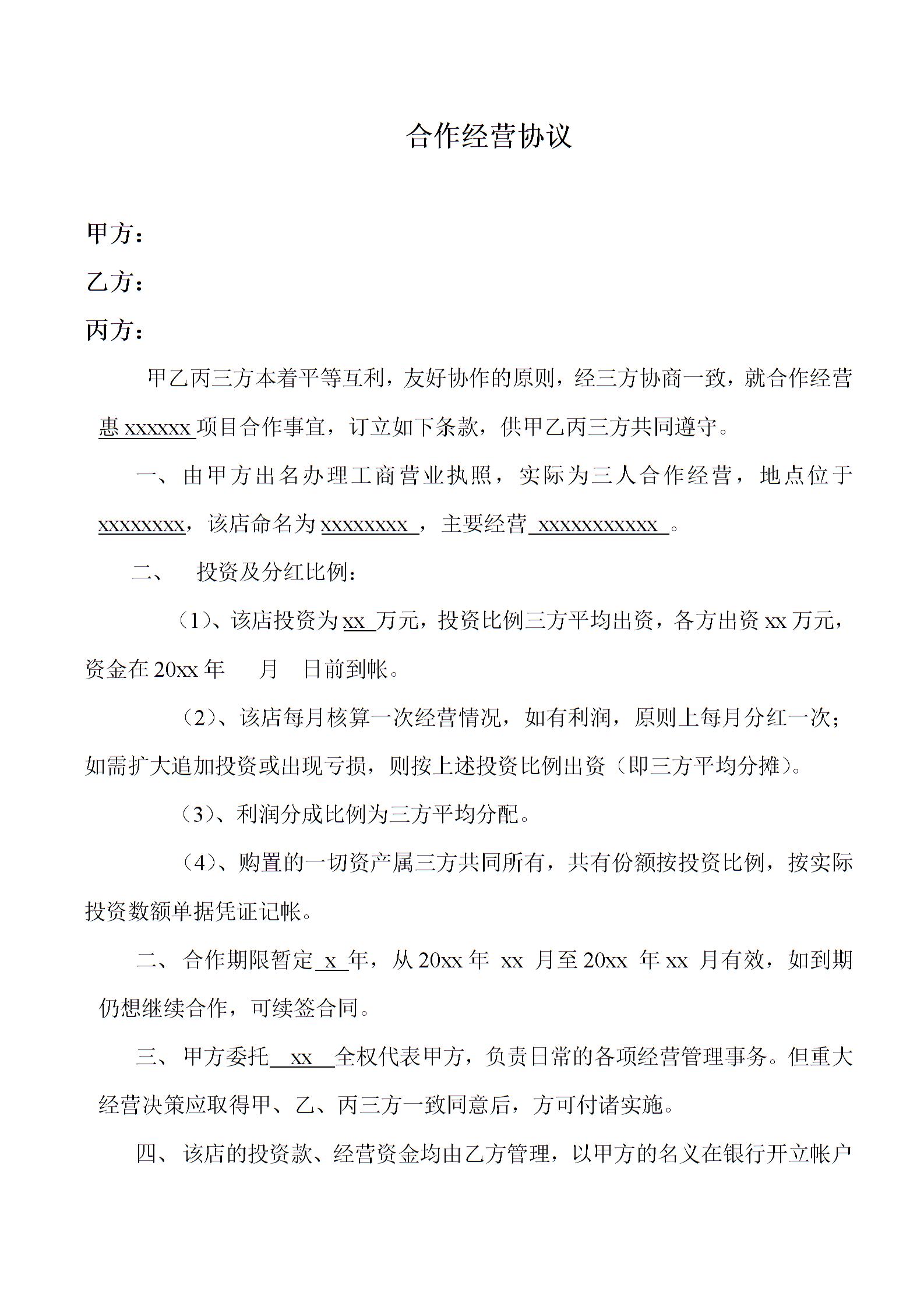 更多合作协议下载