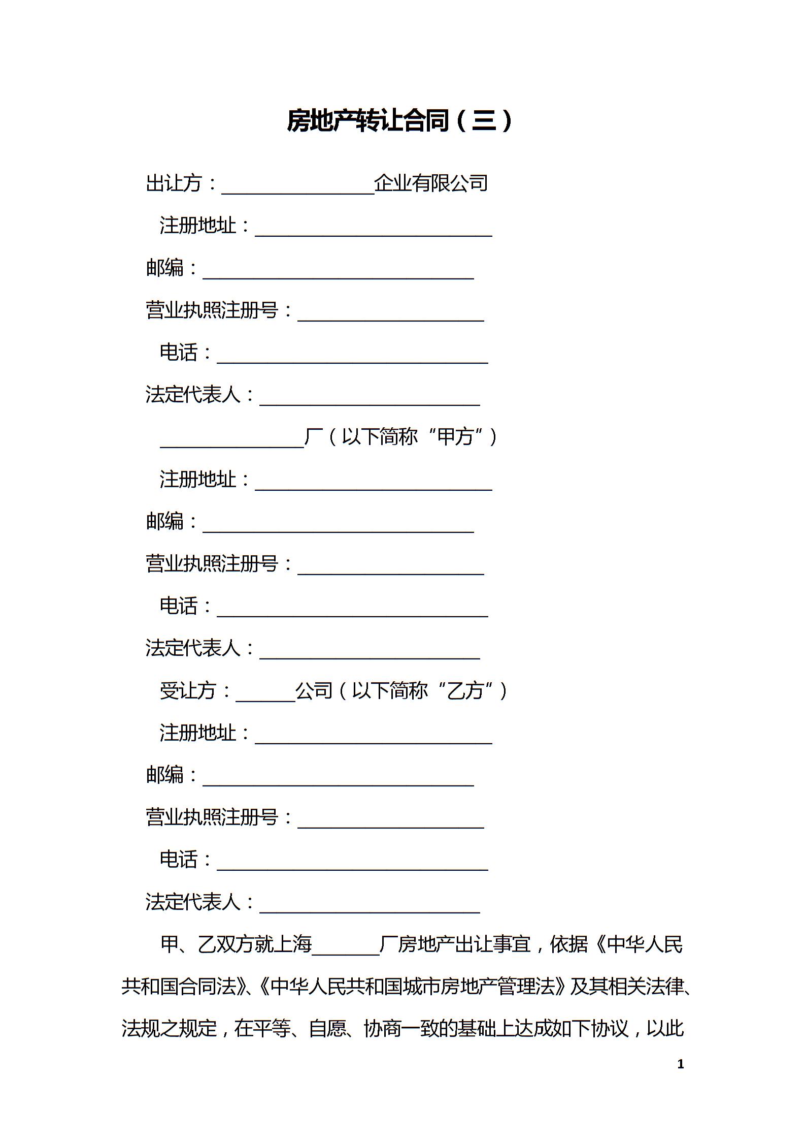 房地产转让合同(三)