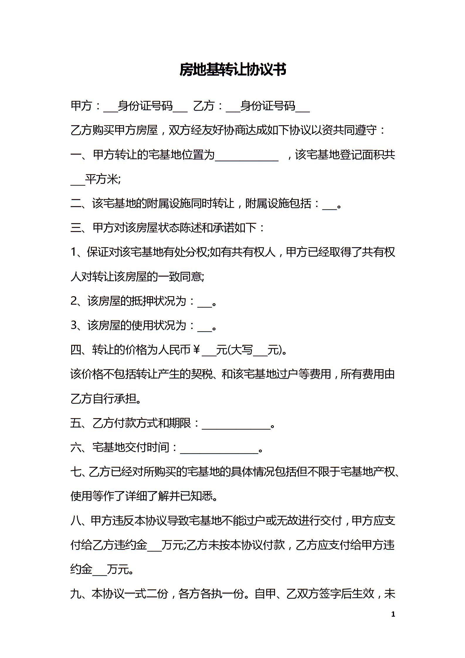 房地基转让协议书