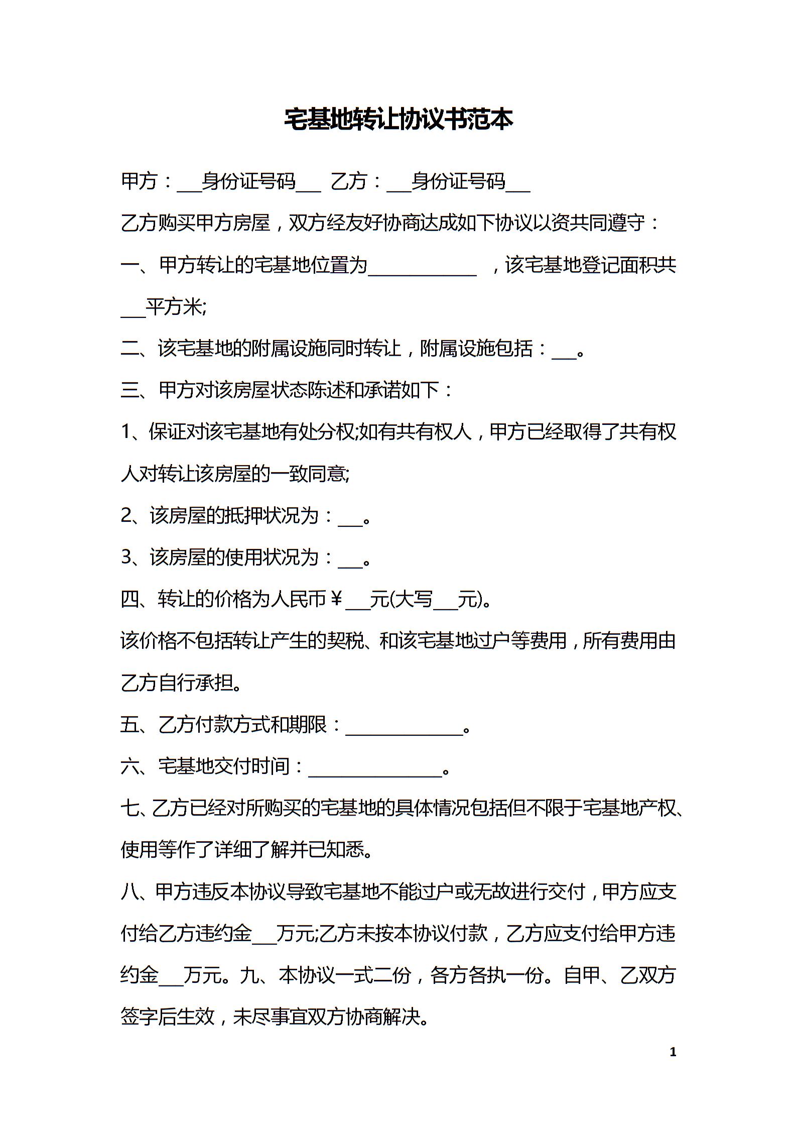 宅基地转让协议书范本