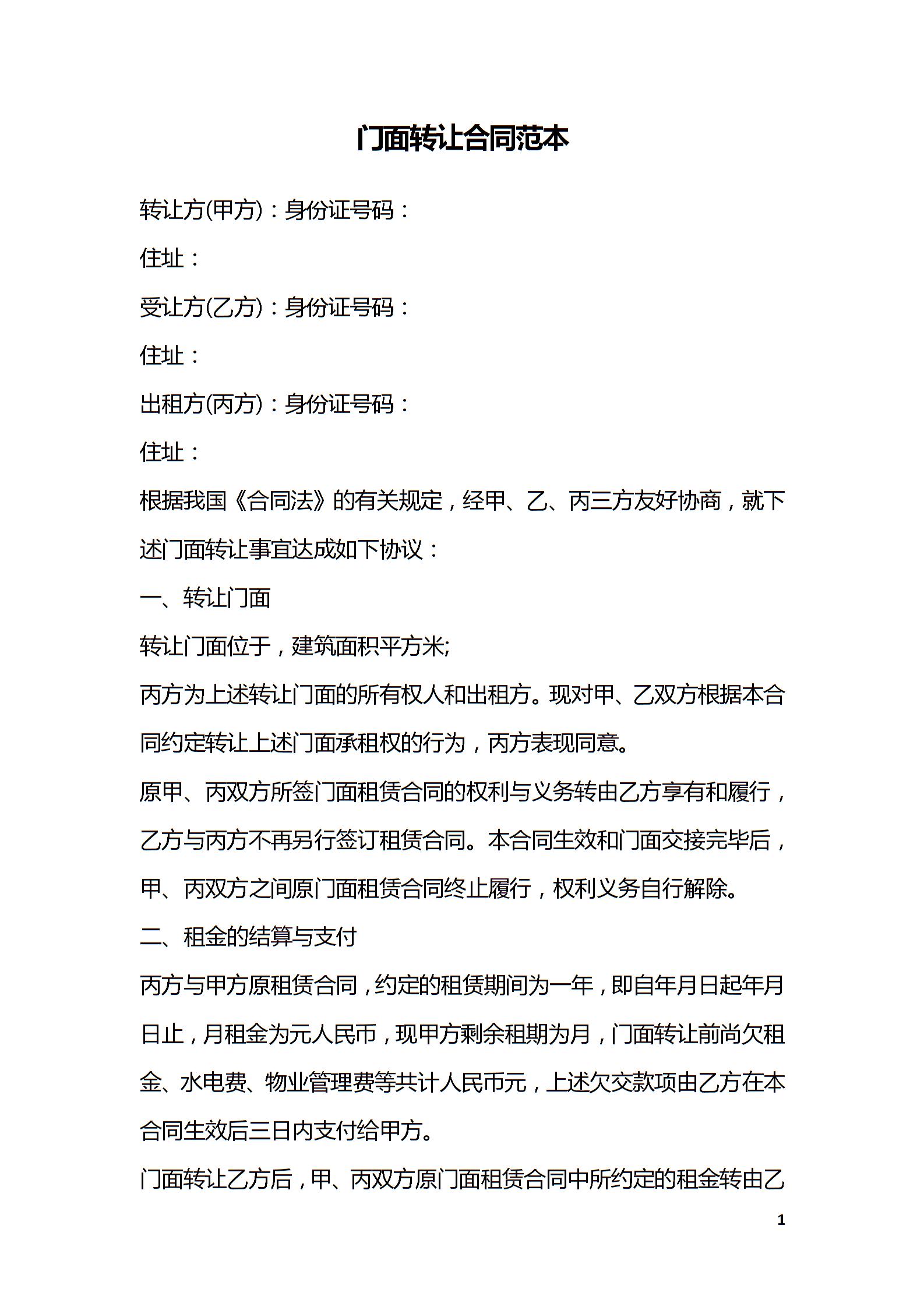门面转让合同范本_1
