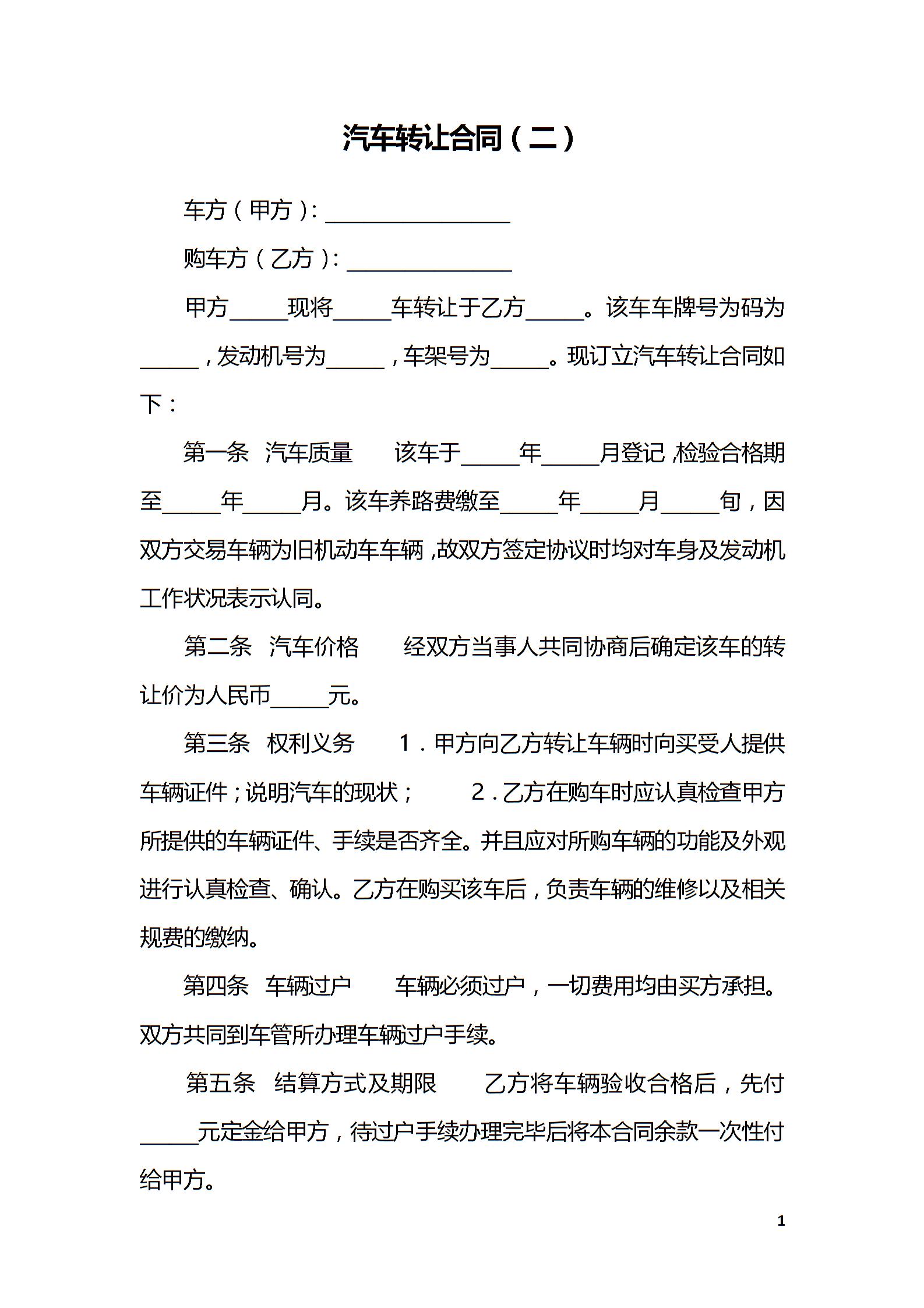 汽车转让合同(二)