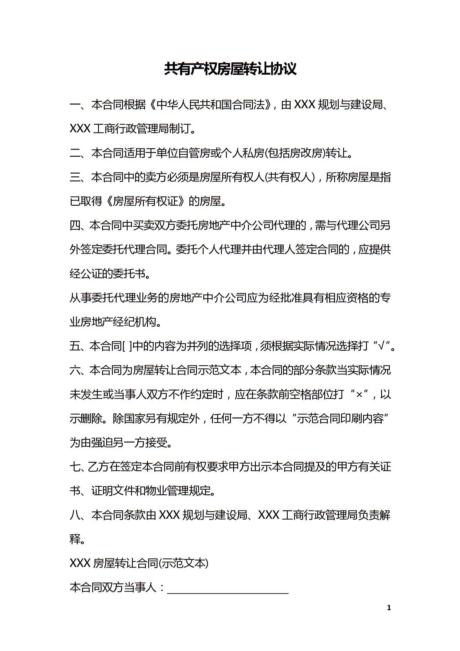共有产权房屋转让协议