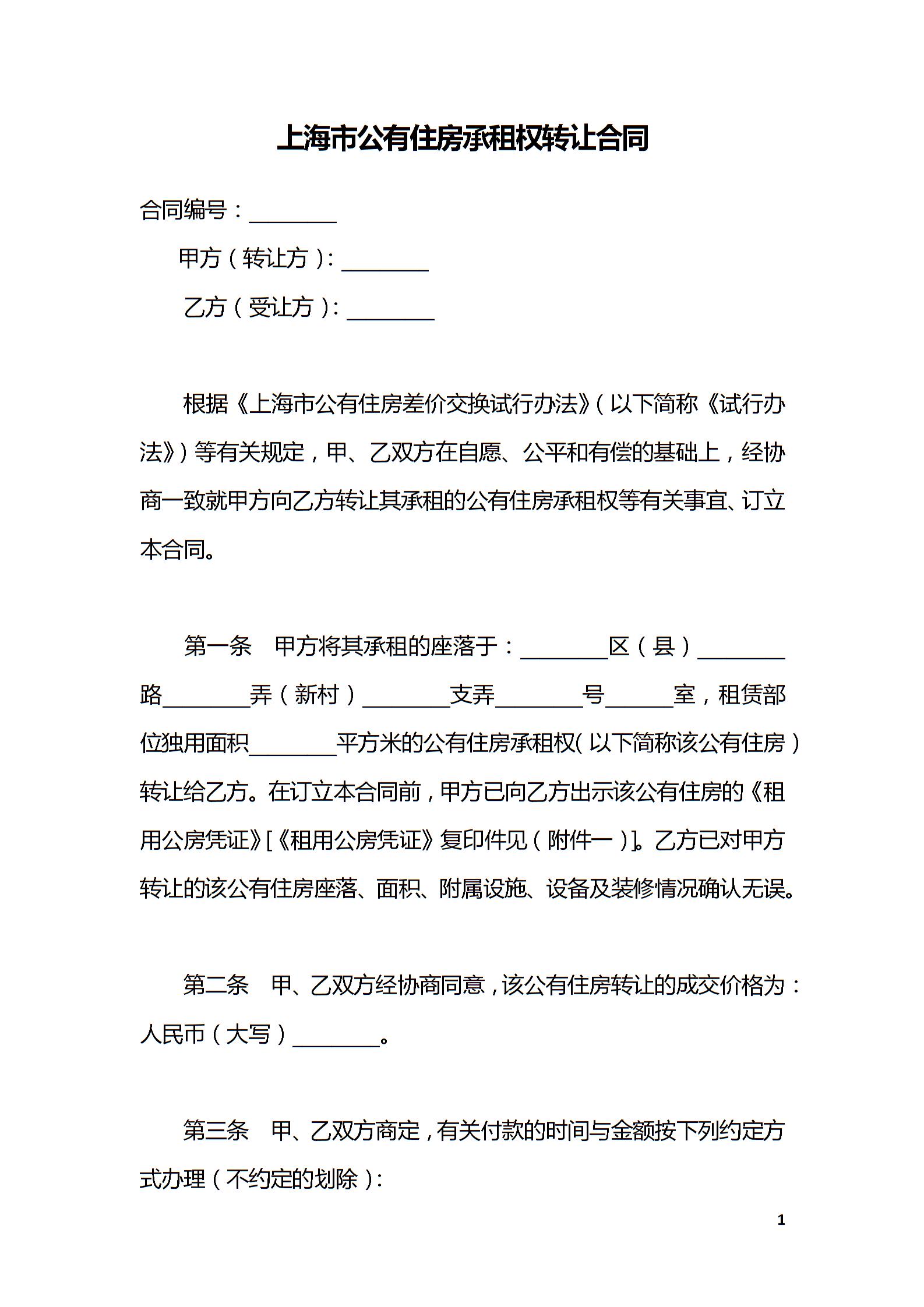 上海市公有住房承租权转让合同