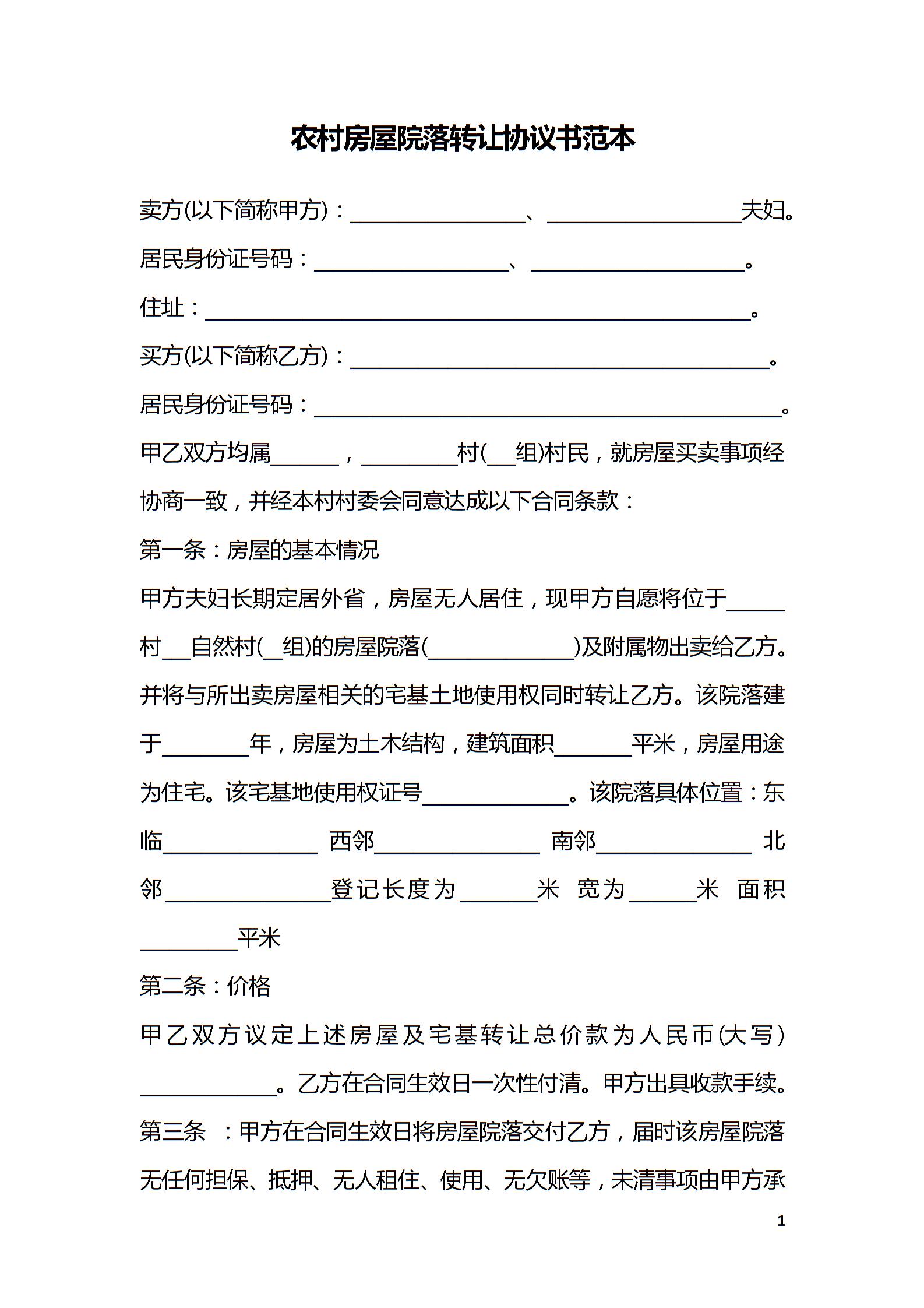 农村房屋院落转让协议书范本