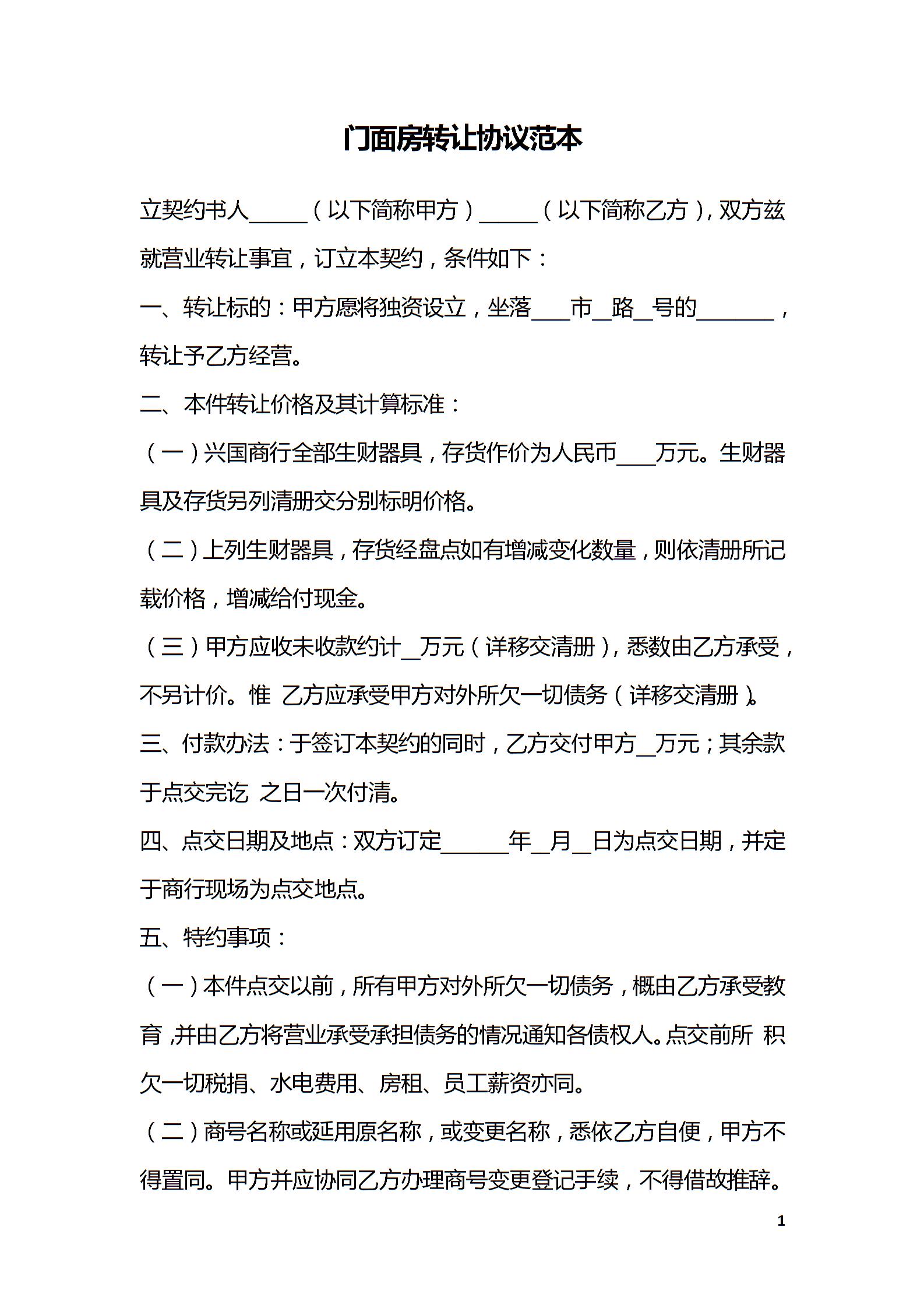 门面转让协议