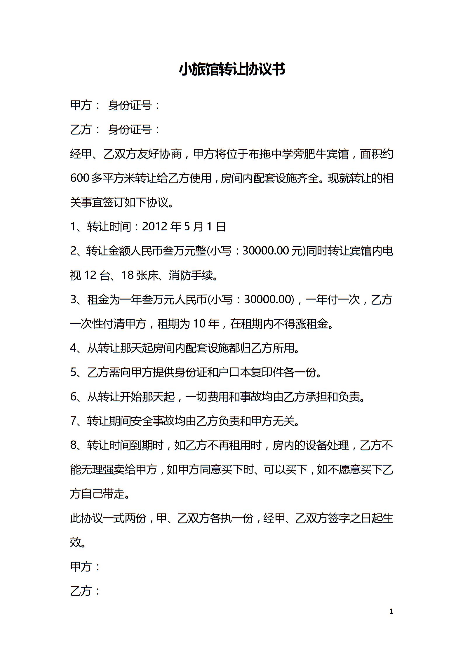 小旅馆转让协议书