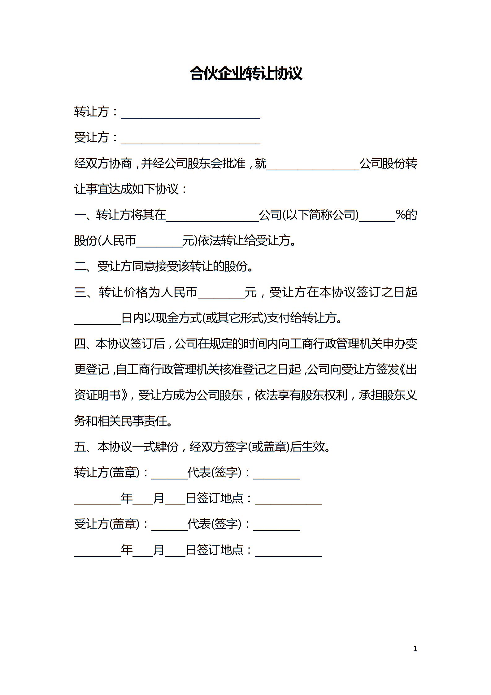 合伙企业转让协议