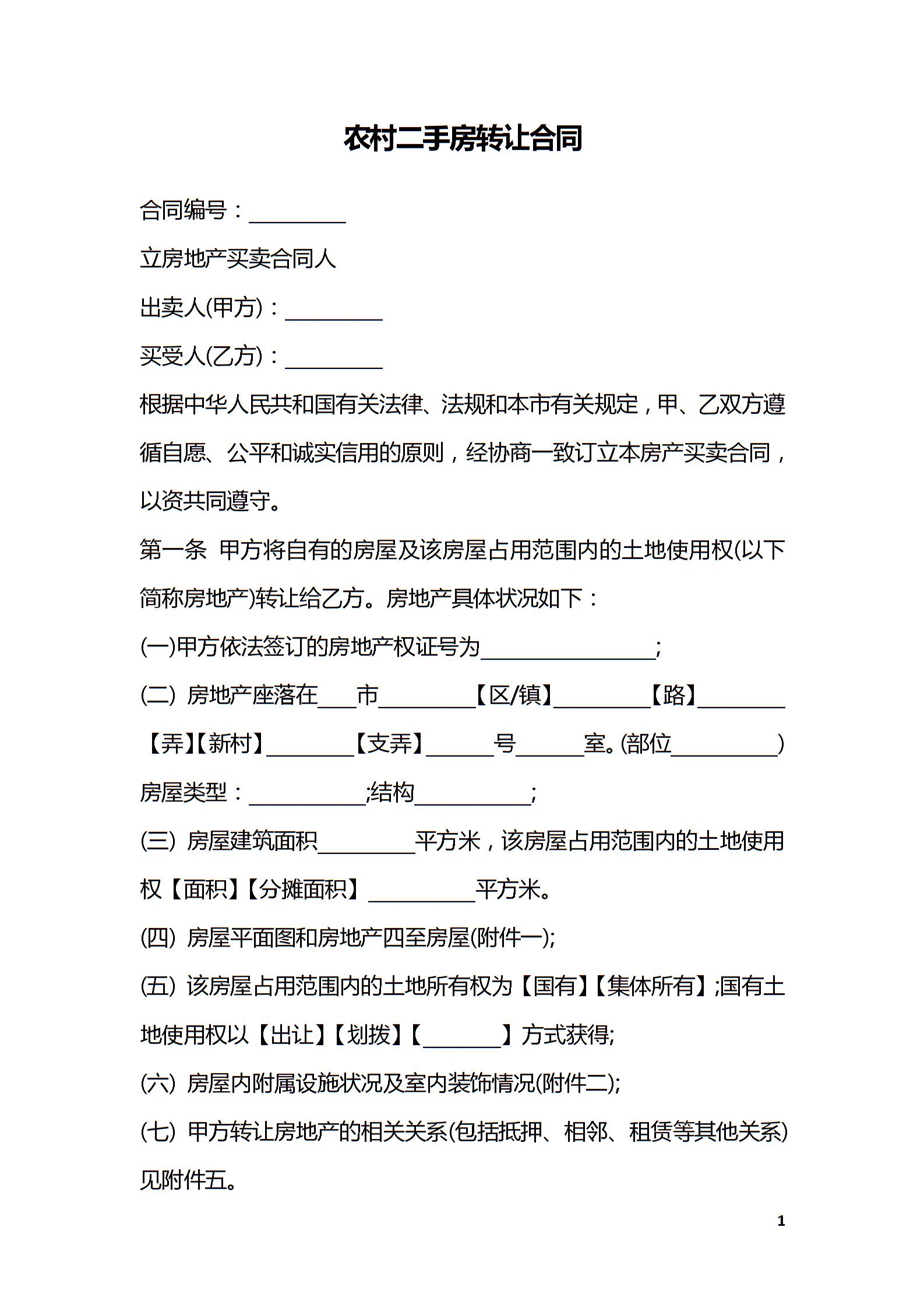 农村二手房转让合同