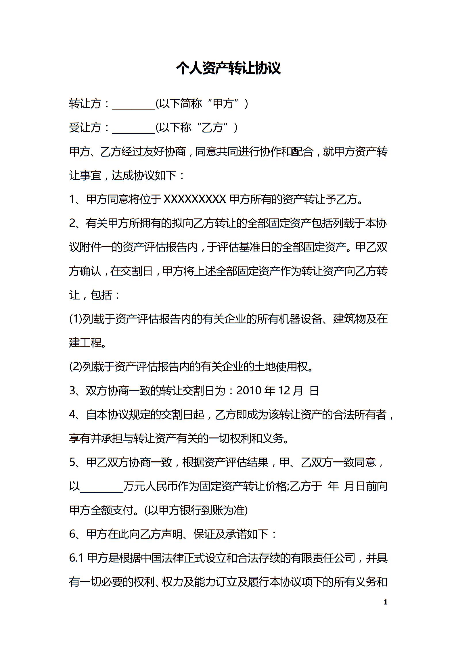 个人资产转让协议