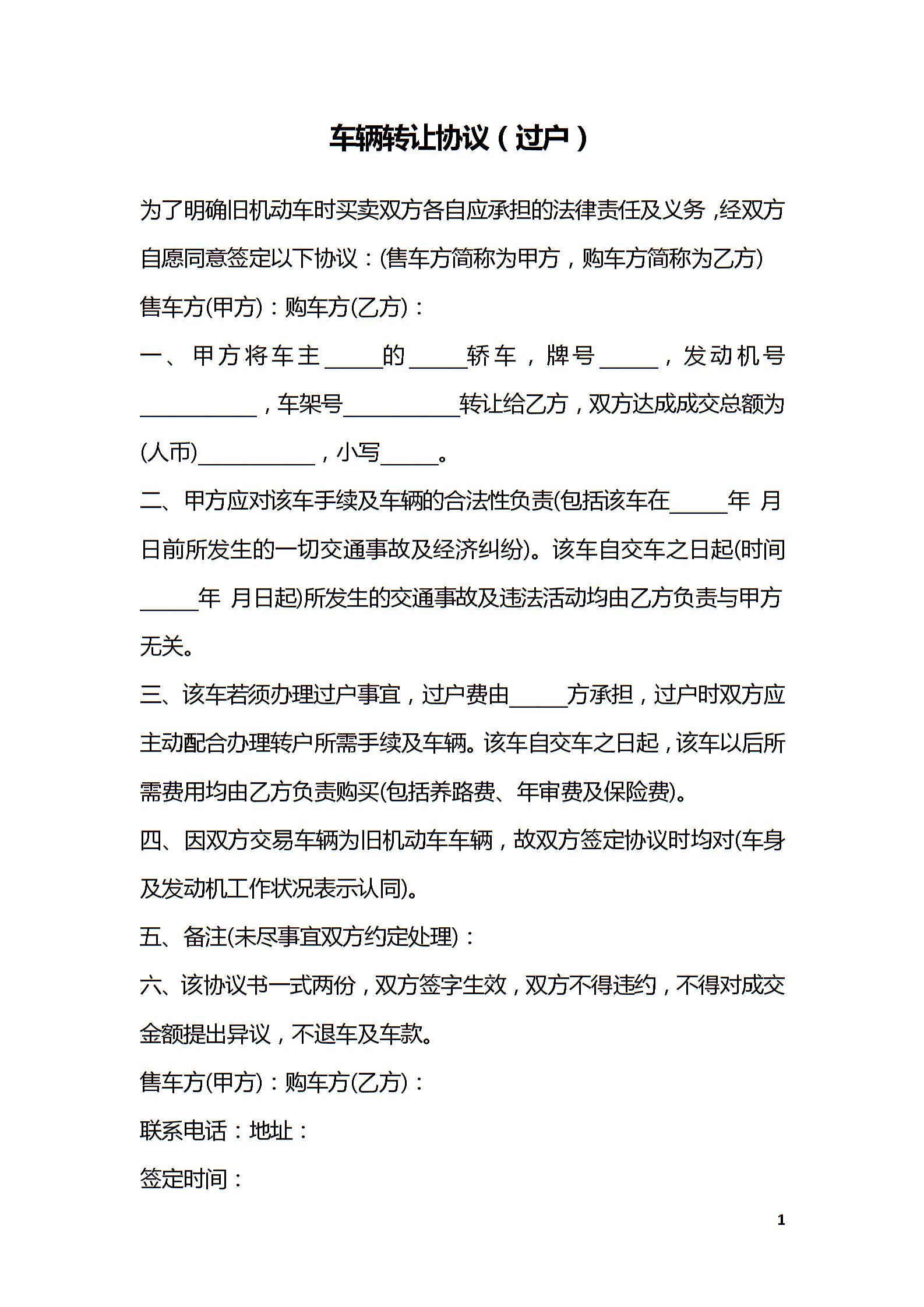 车辆转让协议(过户)