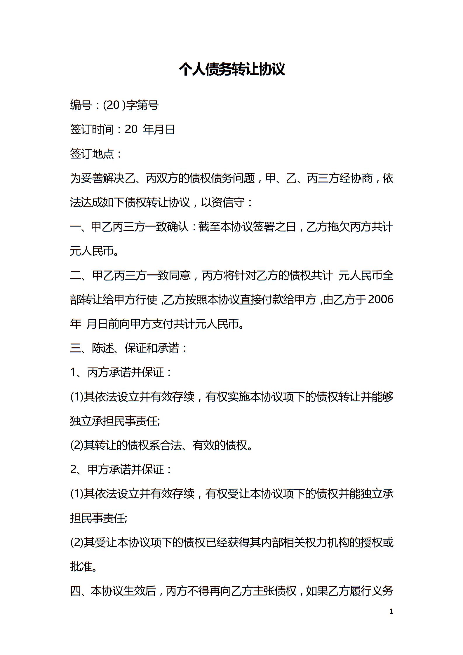 个人债务转让协议