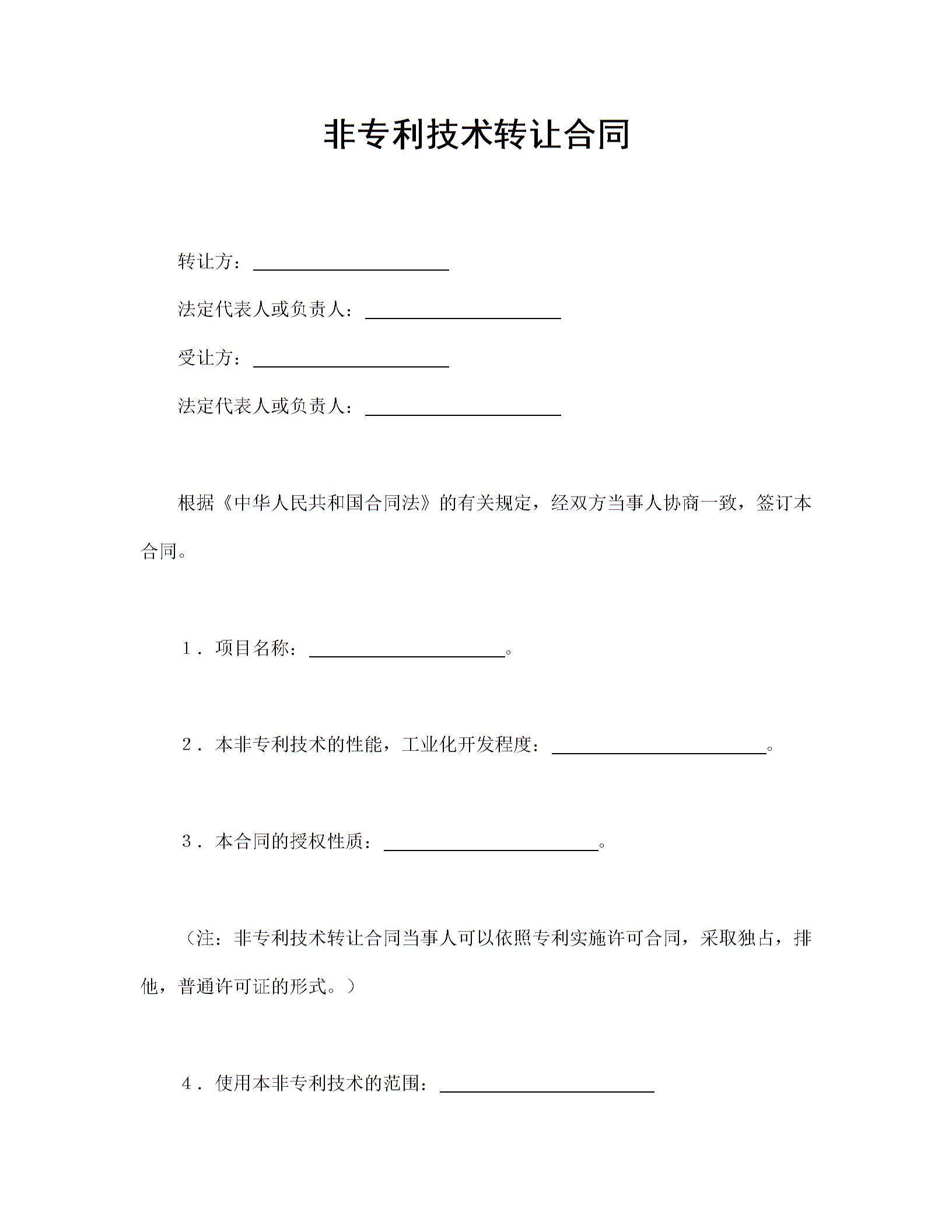 非专利技术转让合同