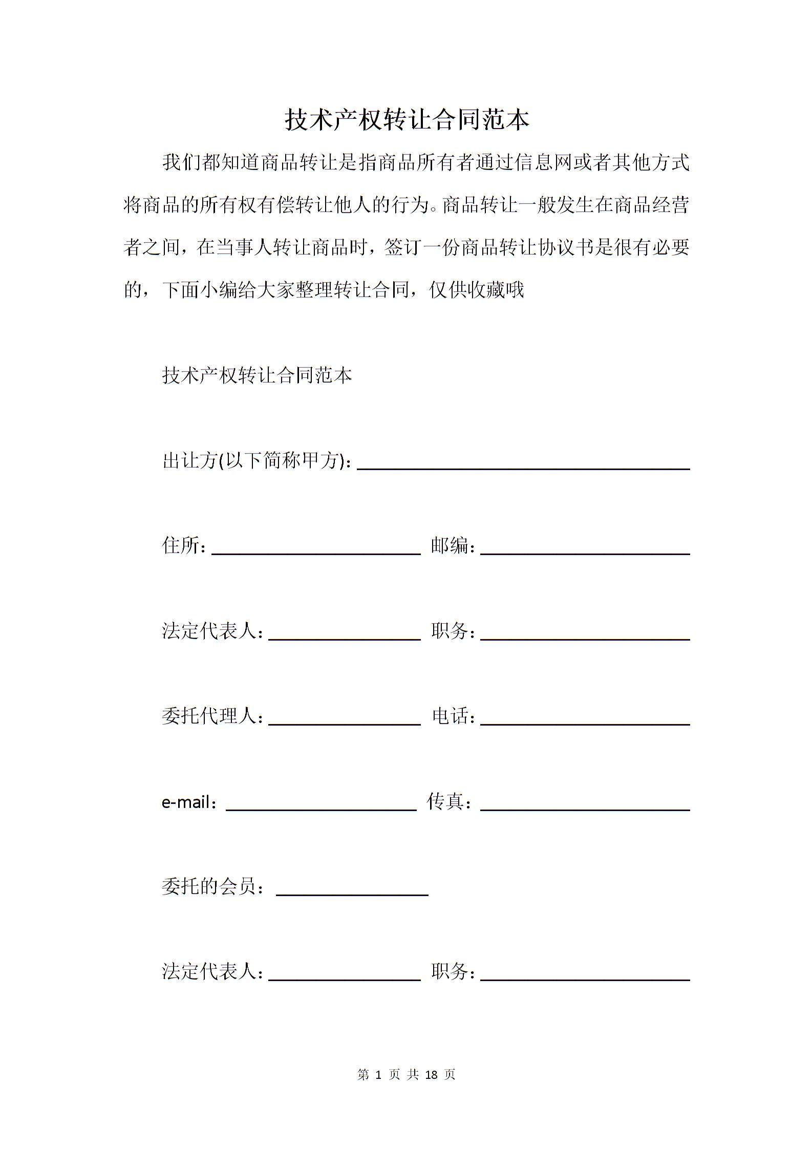 技术产权转让合同范本