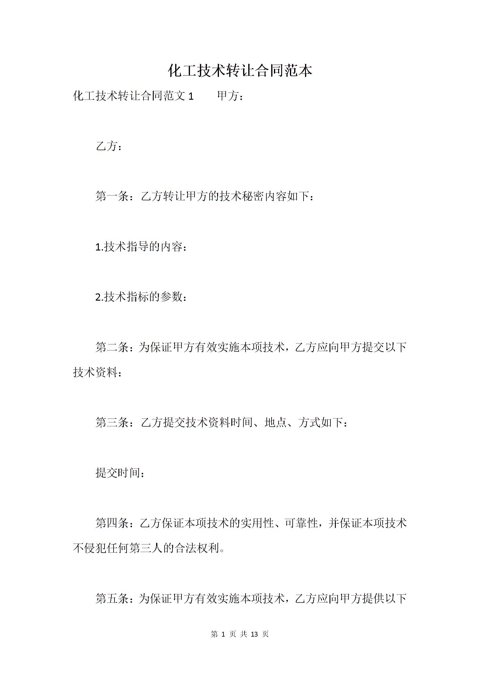 化工技术转让合同范本