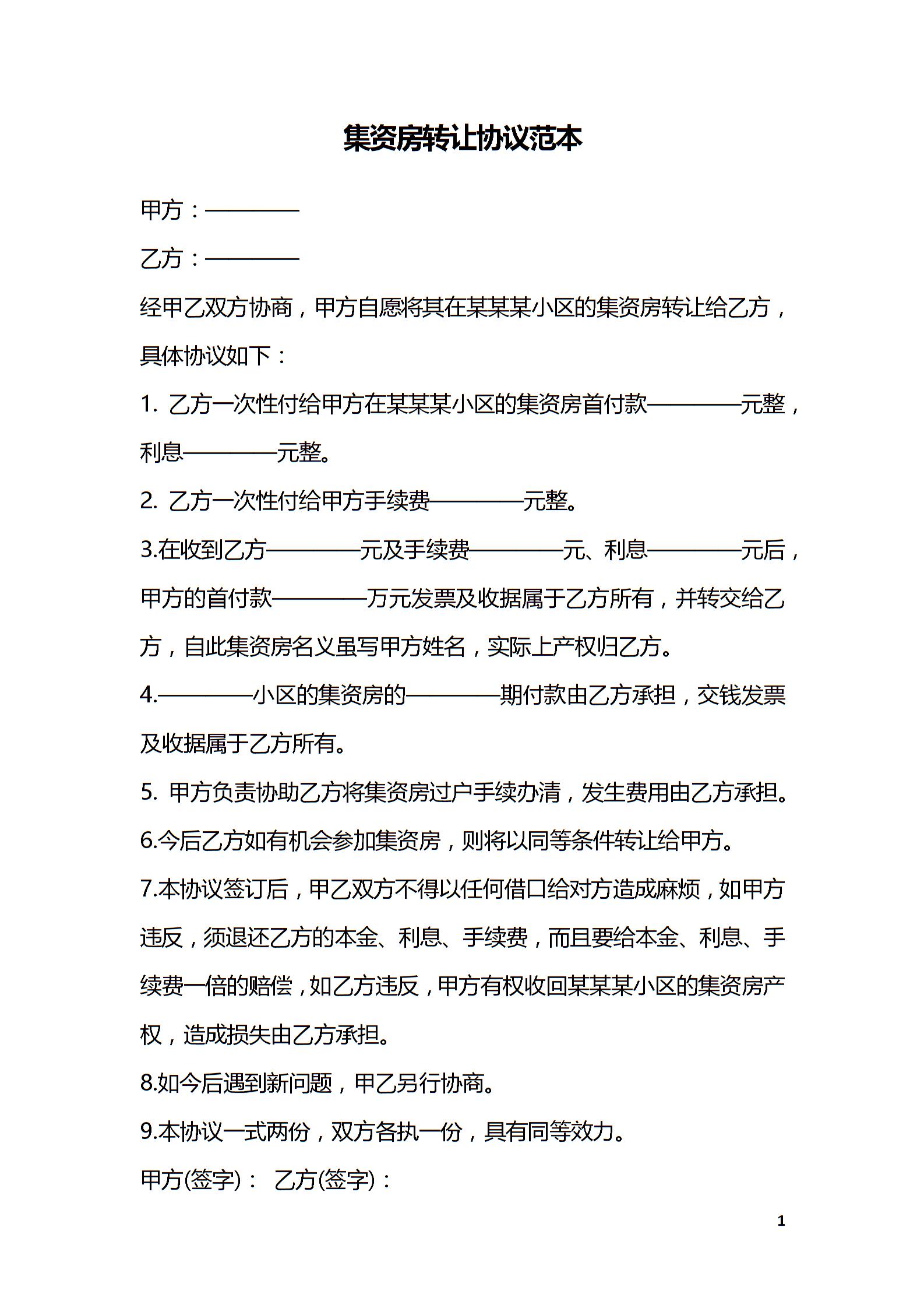 集资房转让协议范本