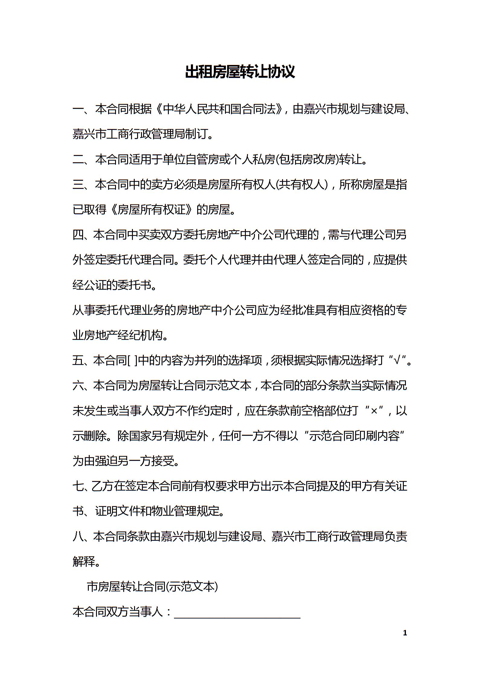 出租房屋转让协议