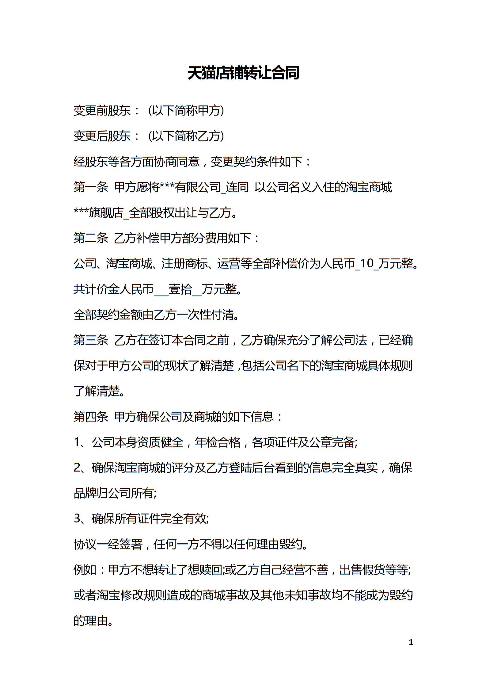 天猫店铺转让合同