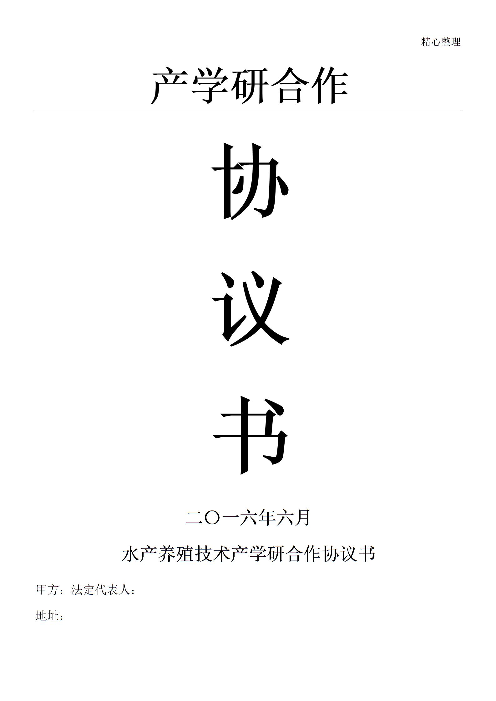 水产养殖产学研技术经验合作协议模板手册
