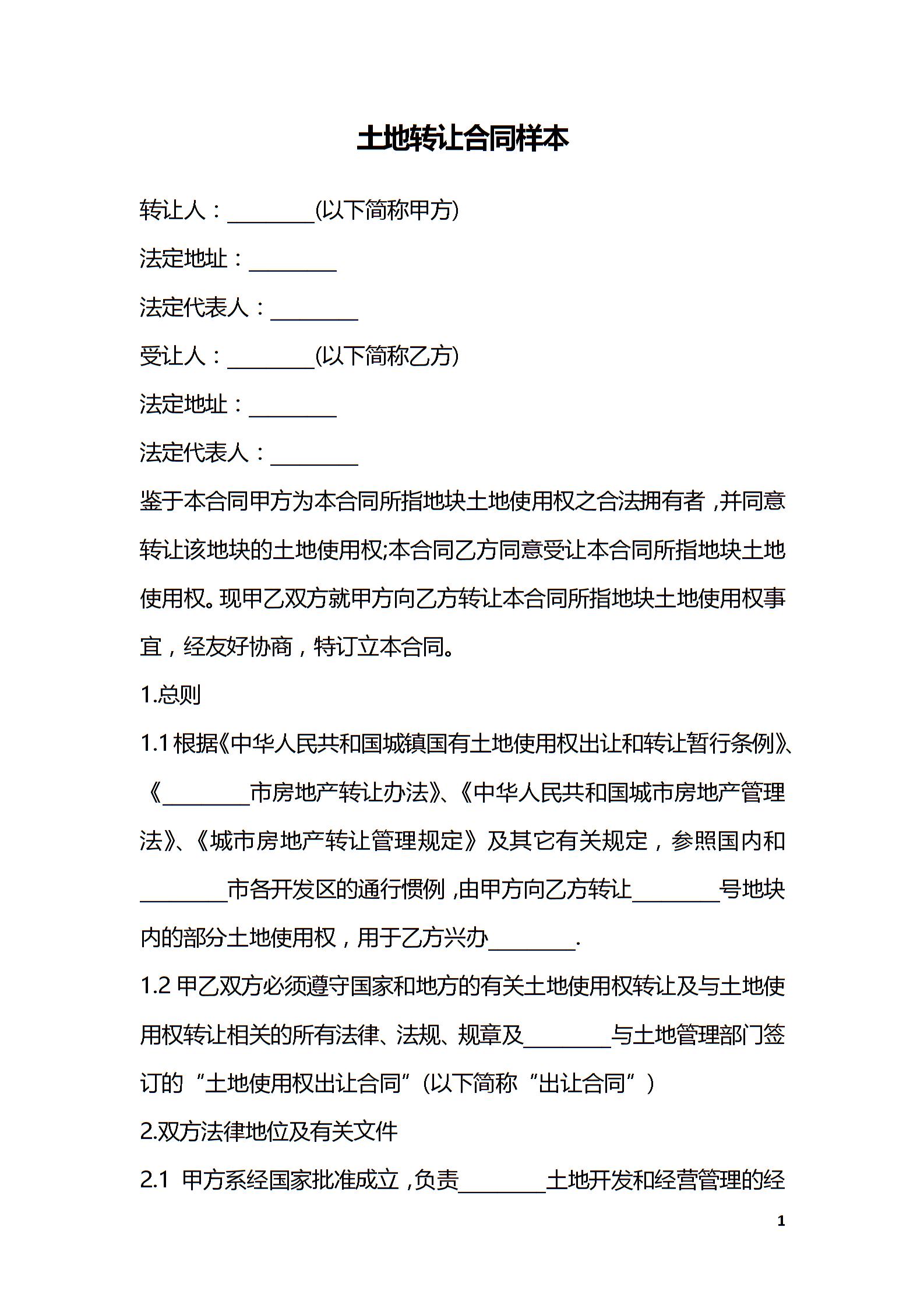 土地转让合同样本