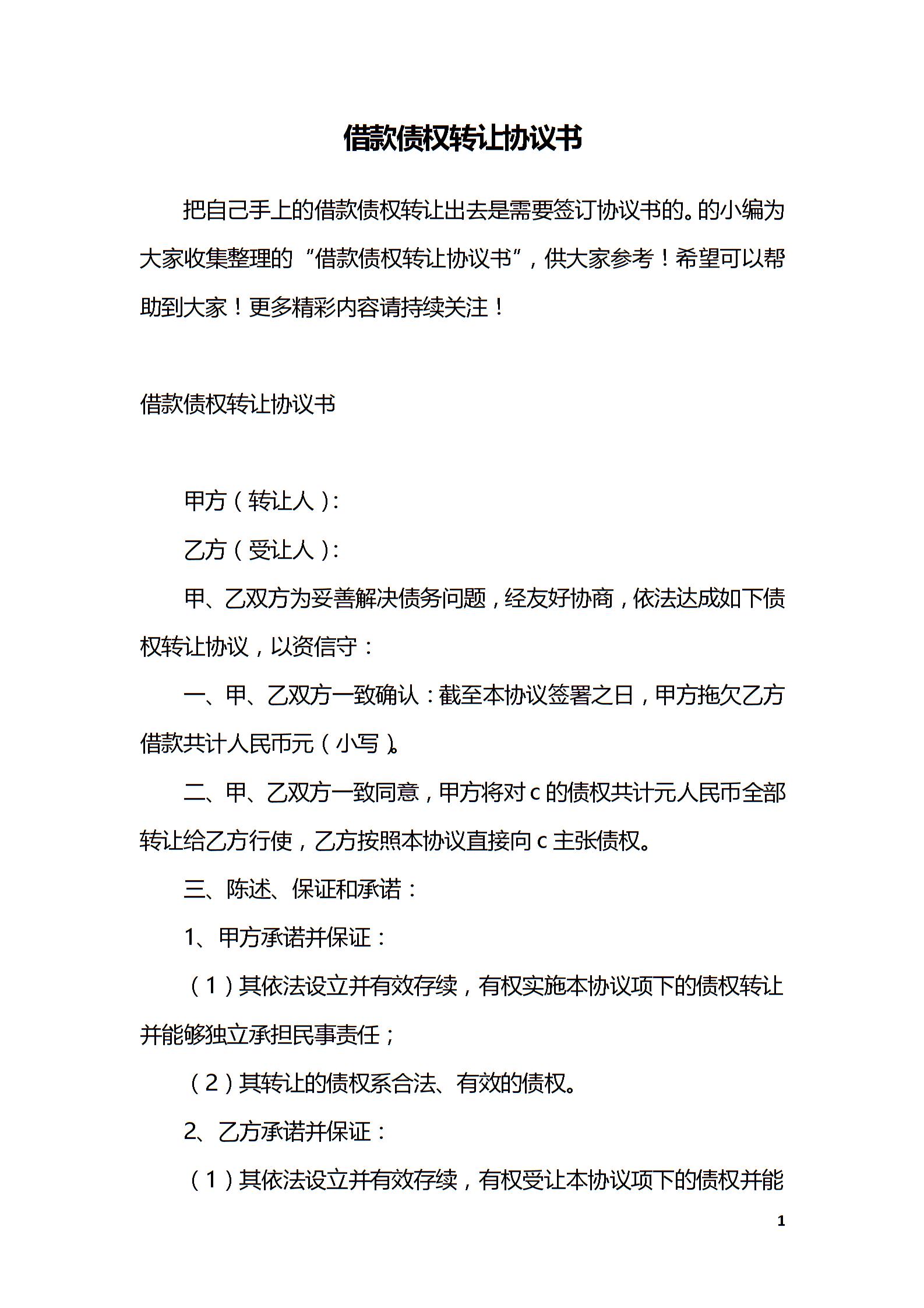 借款债权转让协议书