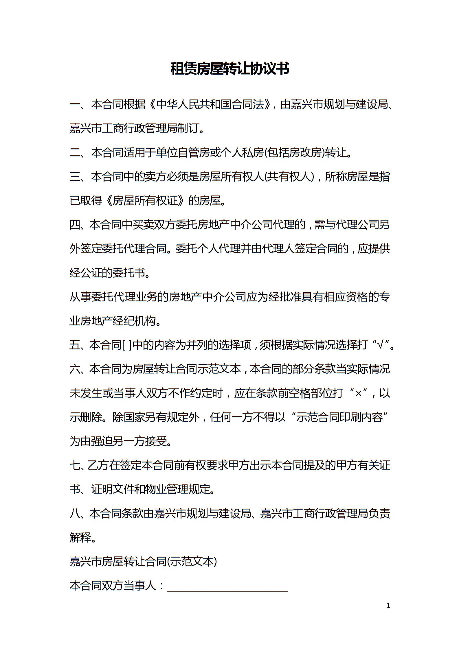 租赁房屋转让协议书