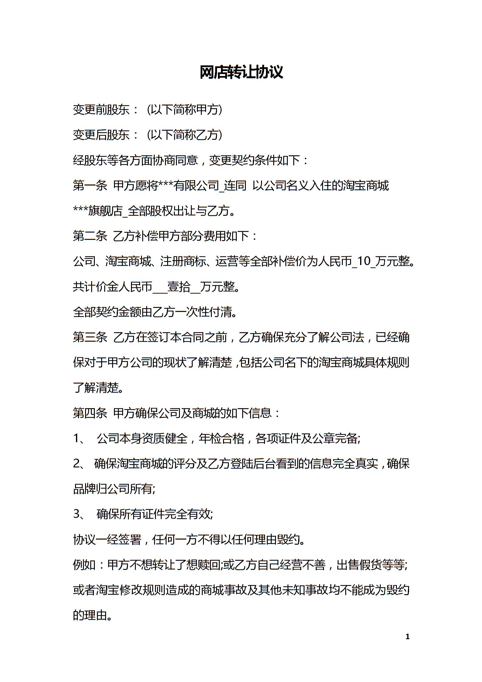 网店转让协议