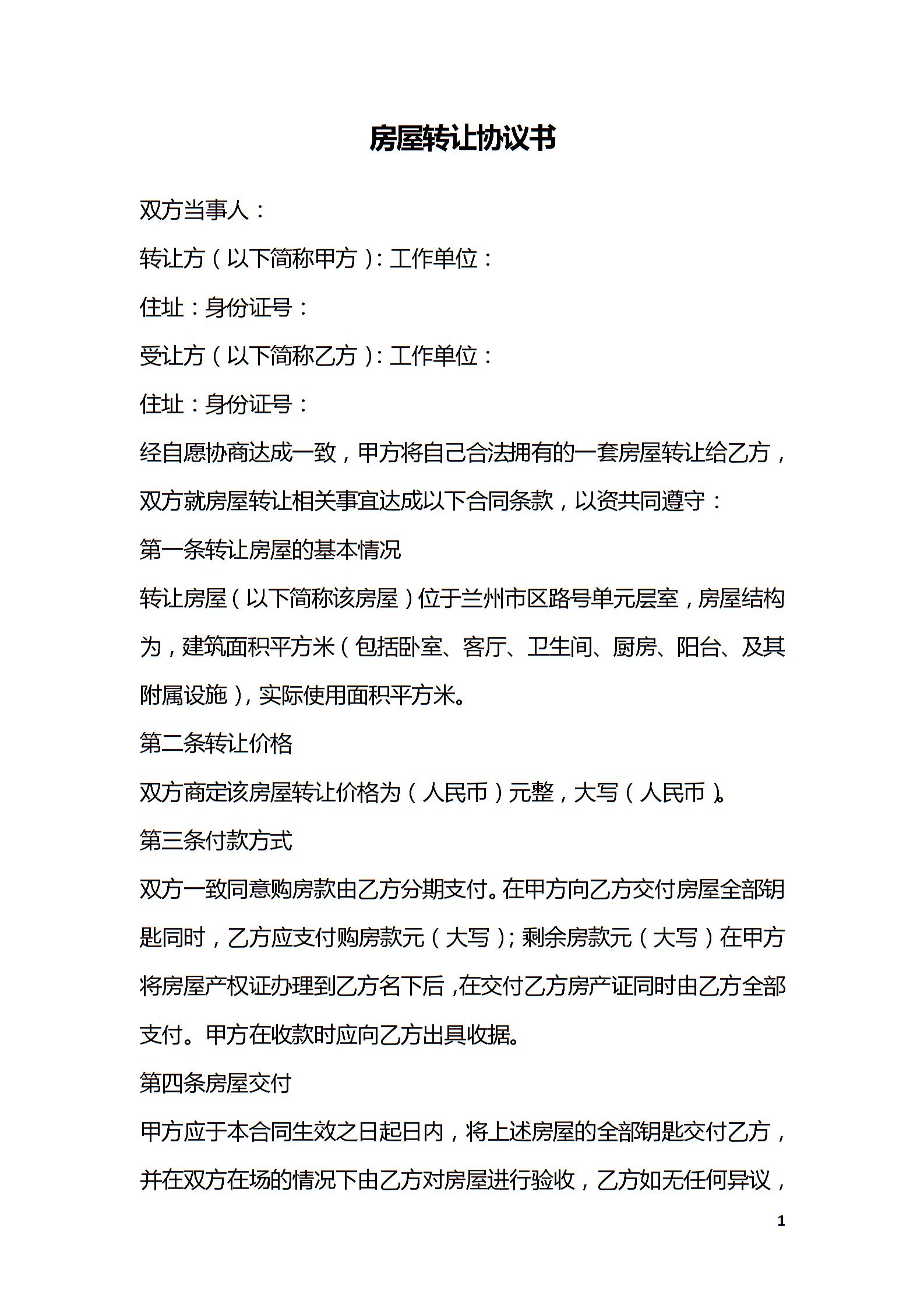 房屋转让协议书