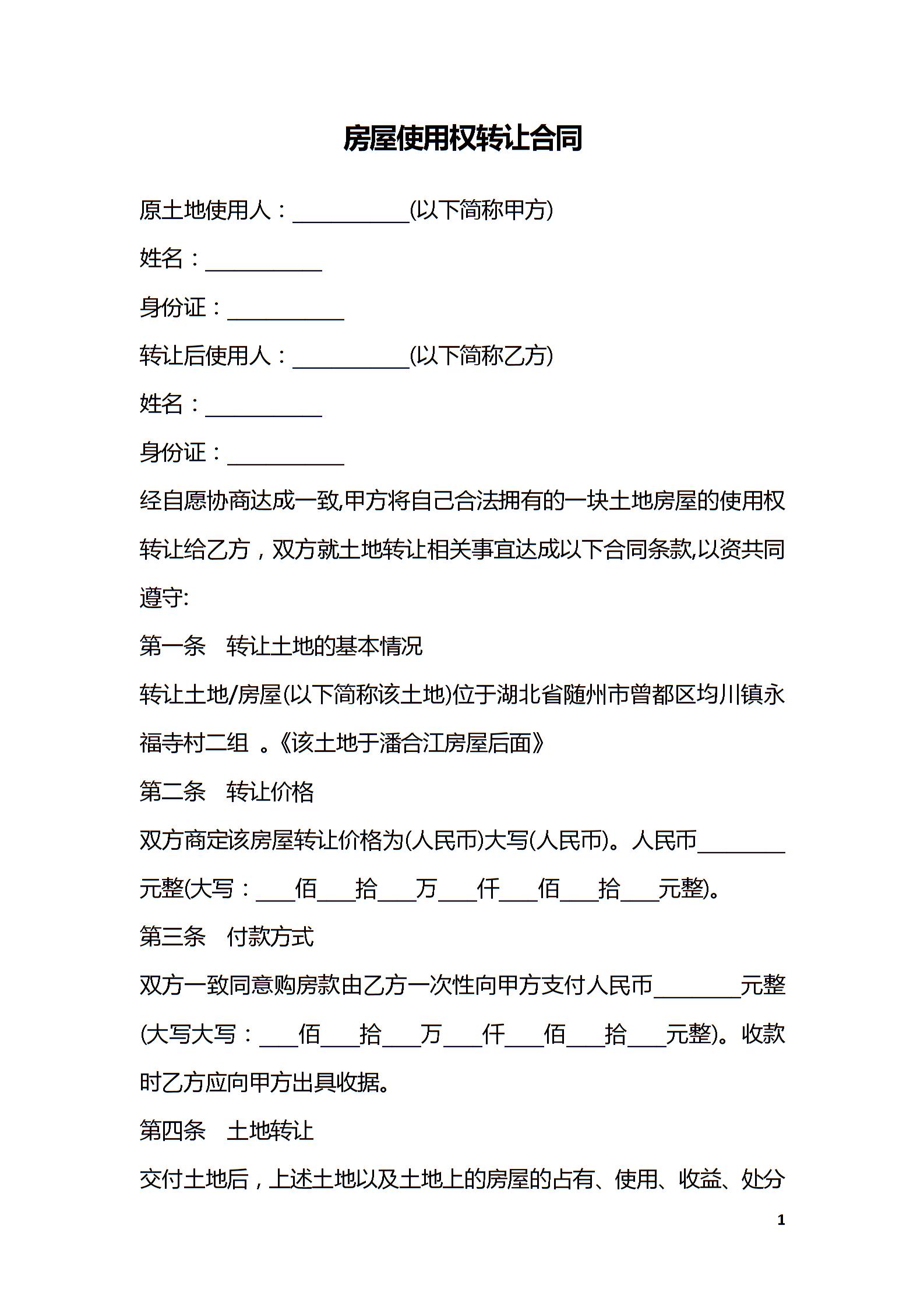 房屋使用权转让合同