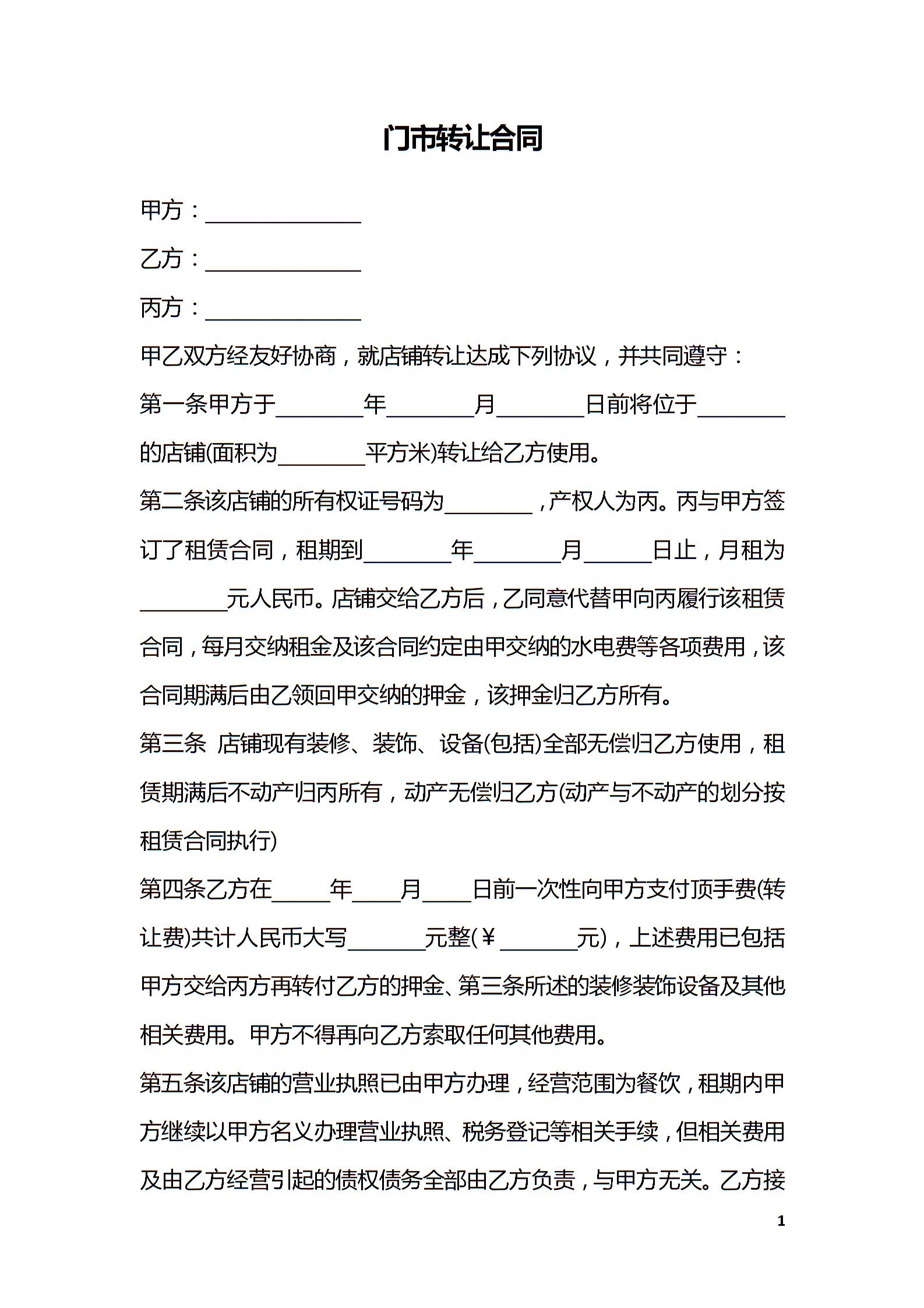 门市转让合同