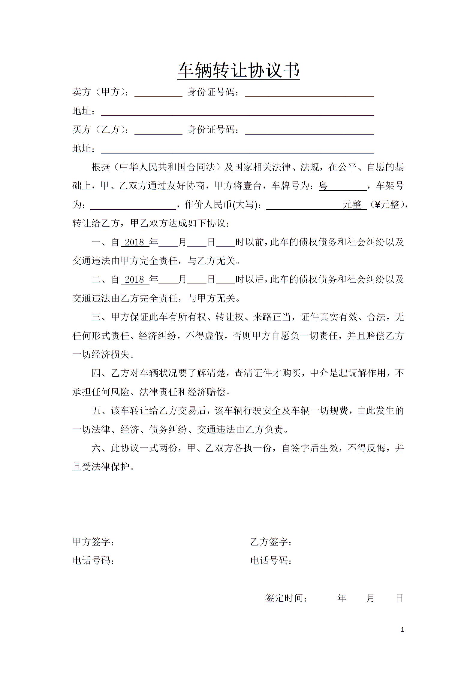 车辆转让协议书(标准范本)