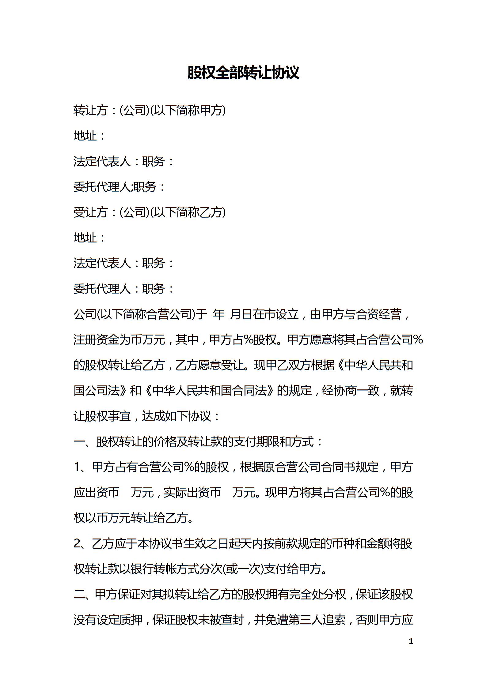 股权全部转让协议
