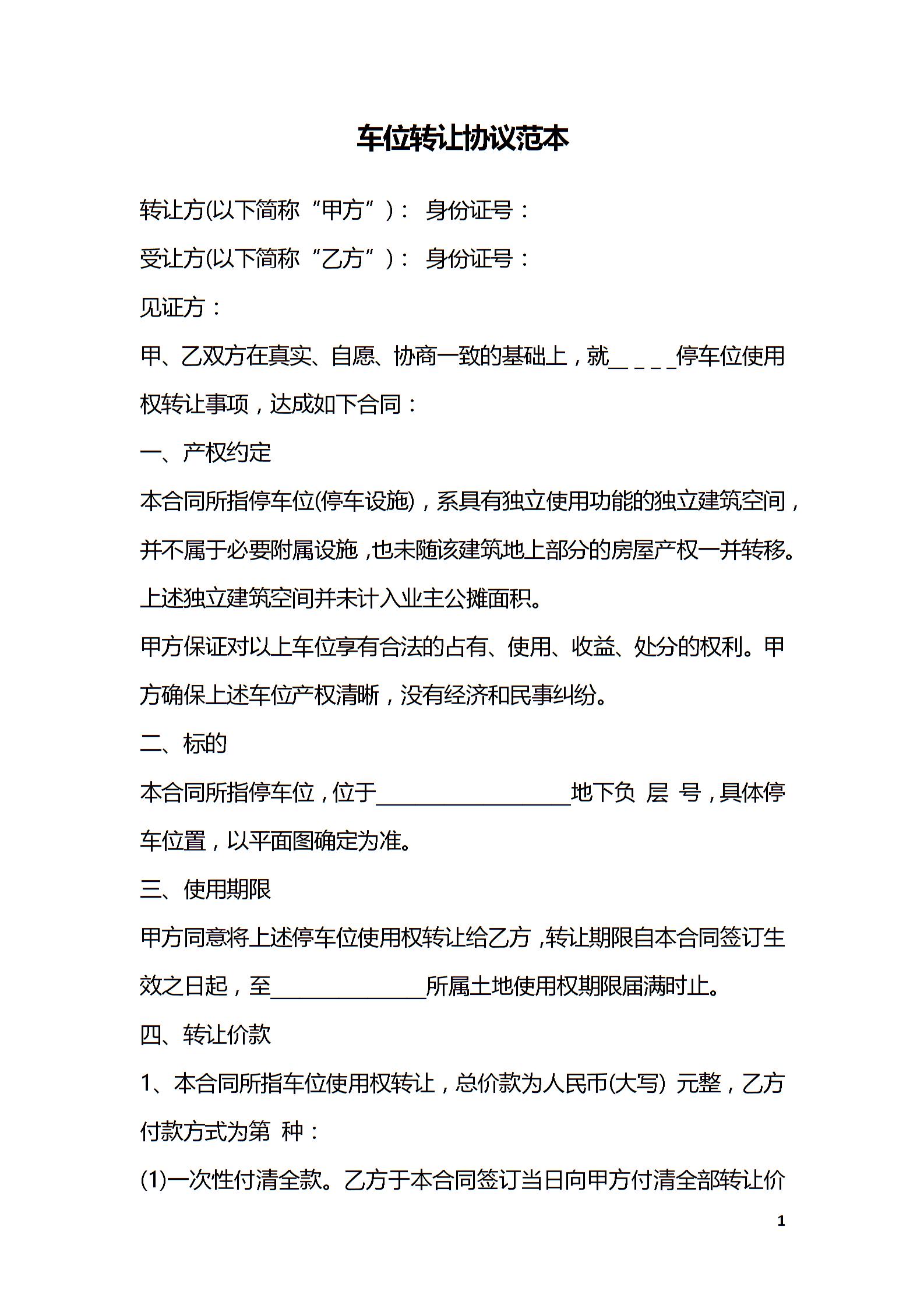 车位转让协议范本