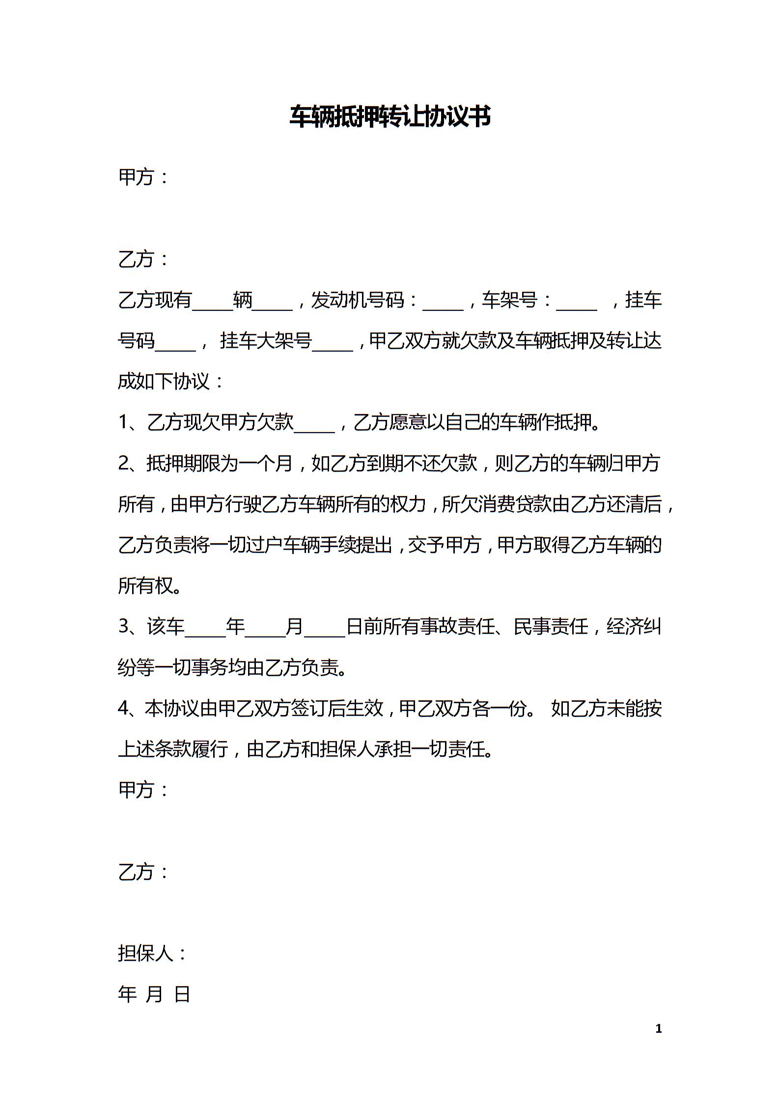 车辆抵押转让协议书