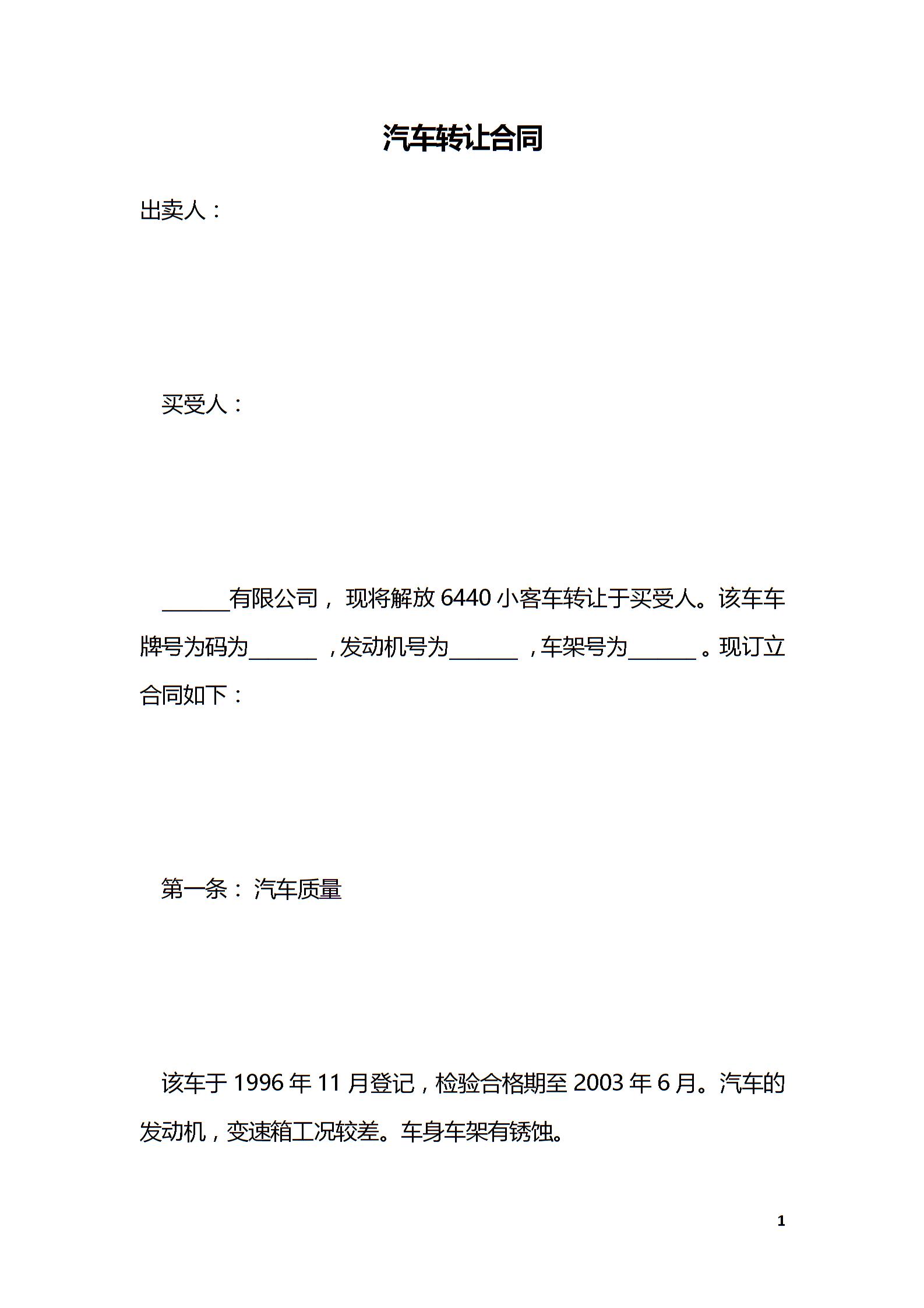 汽车转让合同
