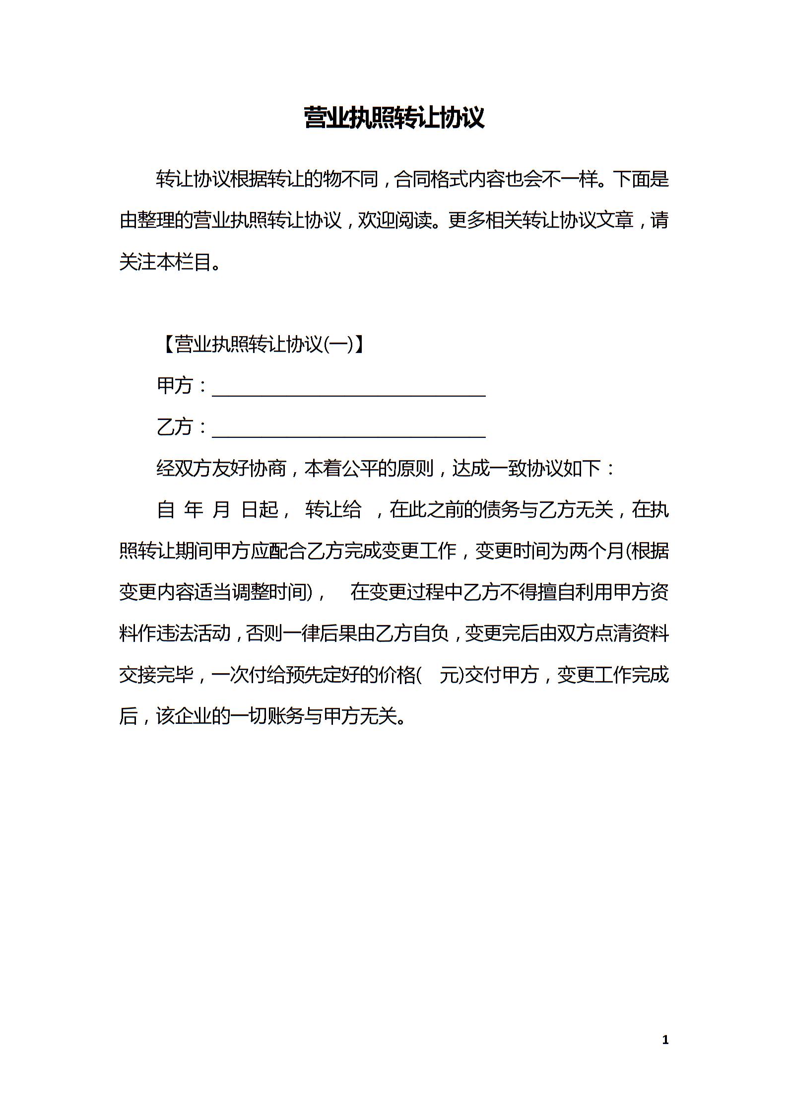 营业执照转让协议