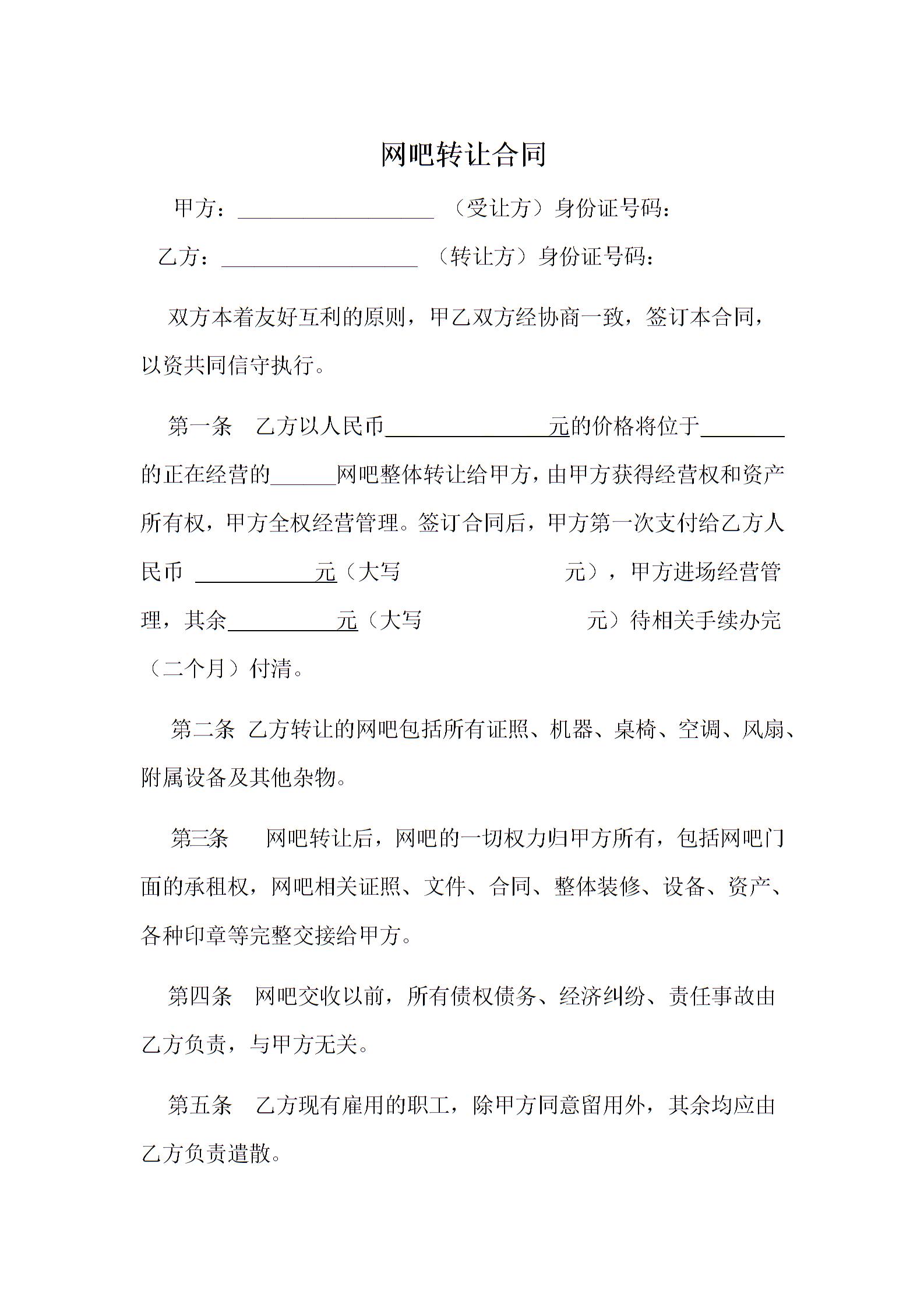 网吧转让合同