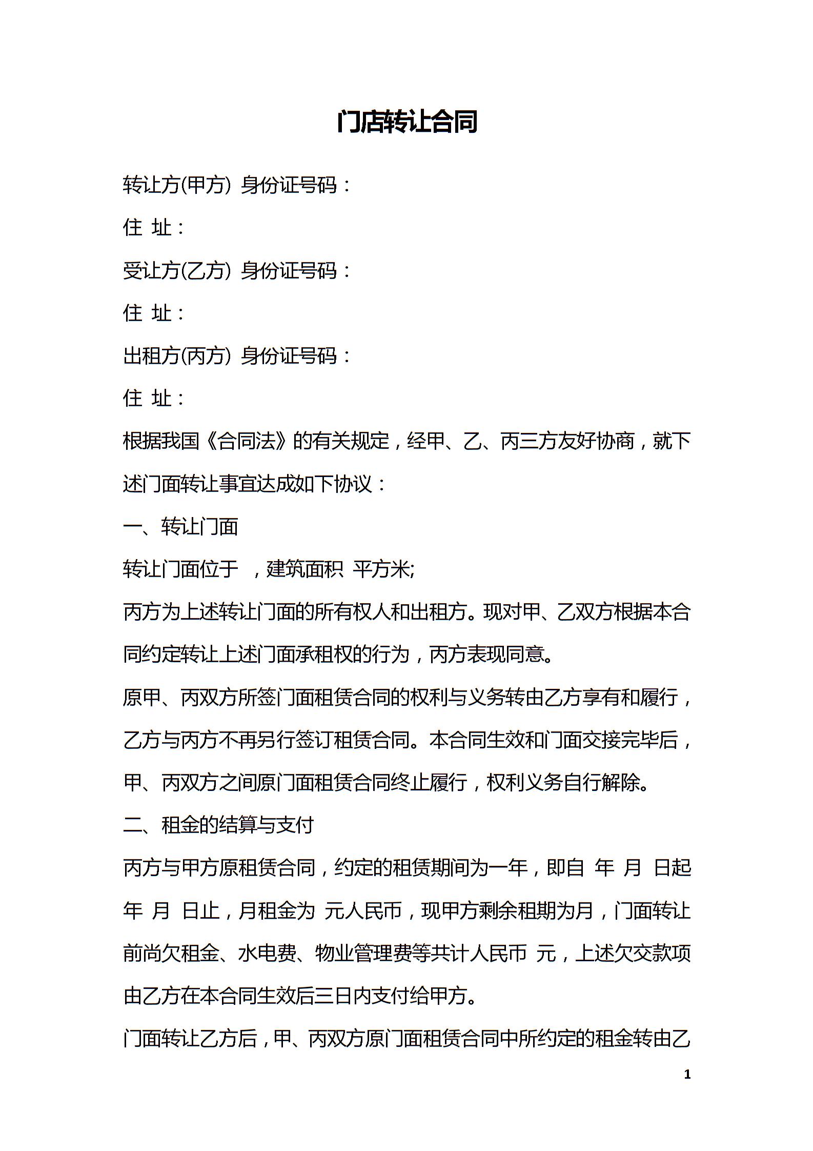 店面转让合同