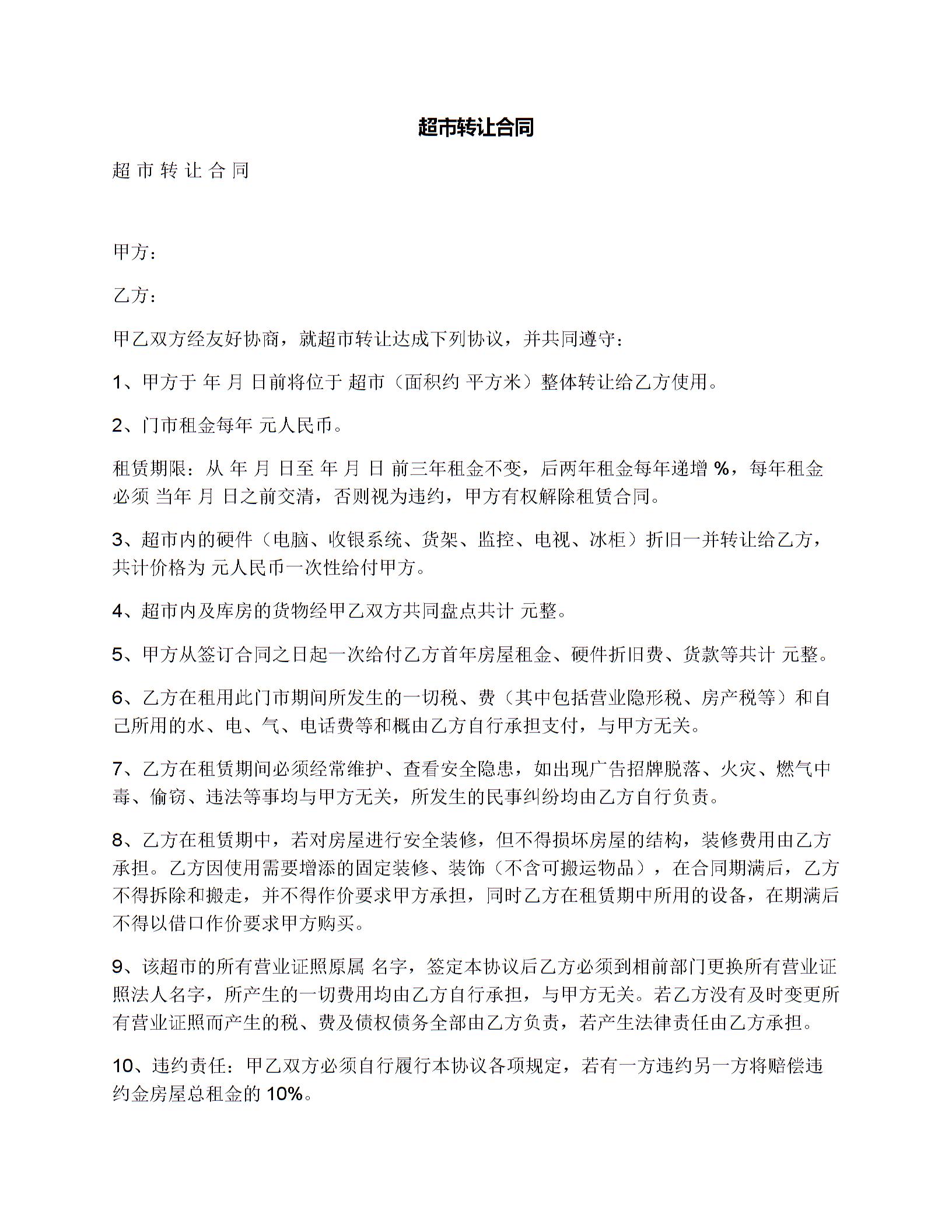 超市转让合同