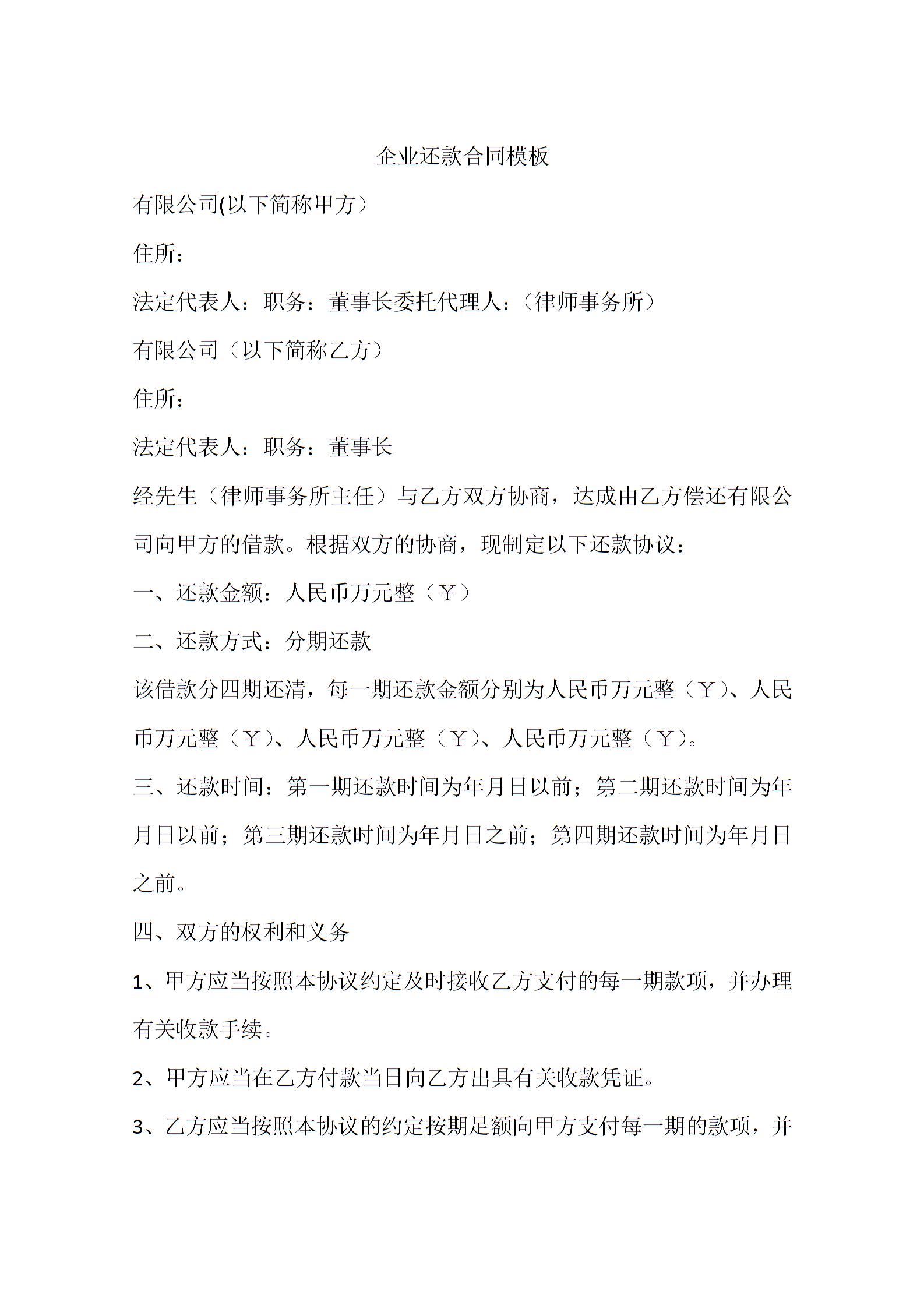 企业还款合同模板