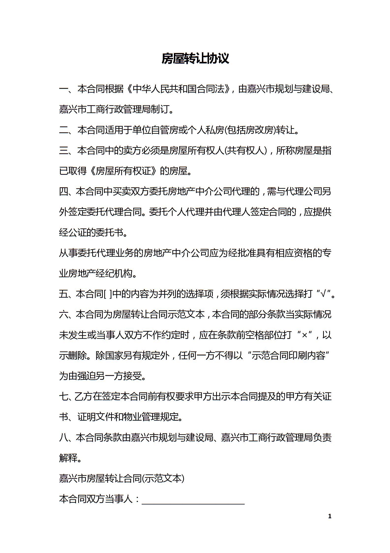 房屋转让协议