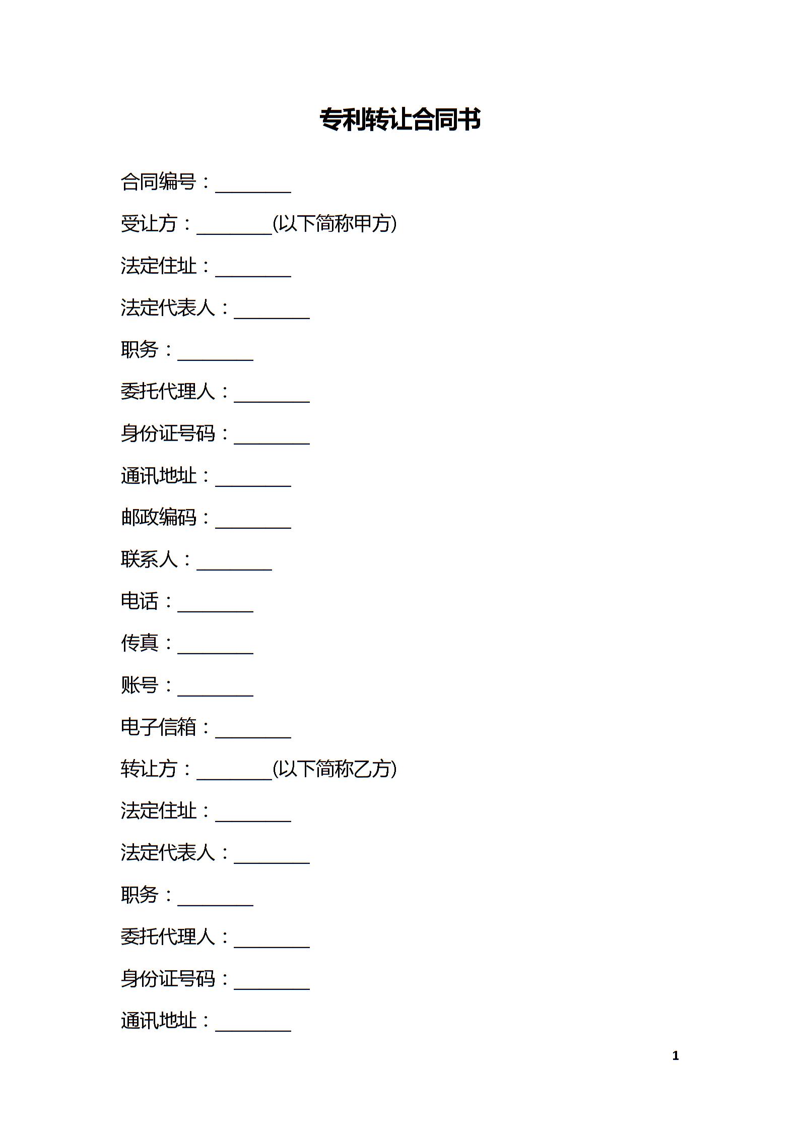 专利转让合同书