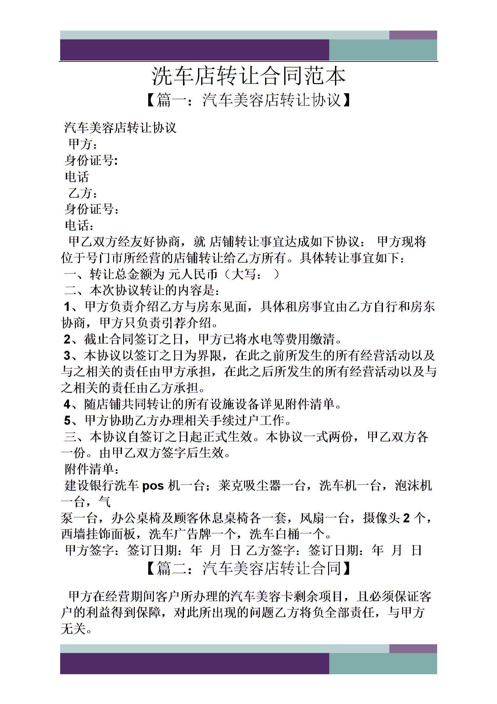 洗车店转让合同范本