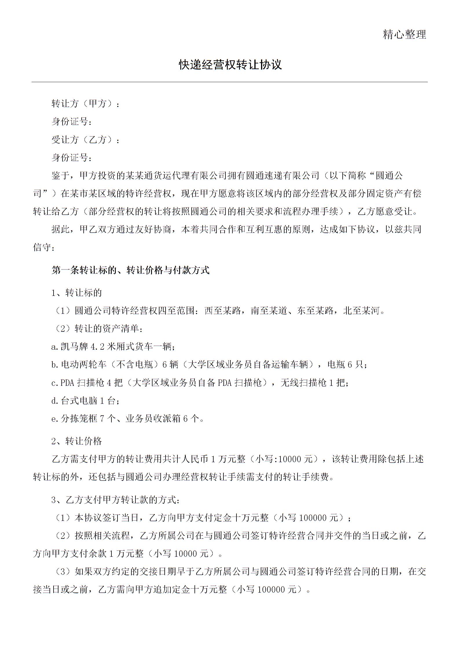 快递转让协议合同书