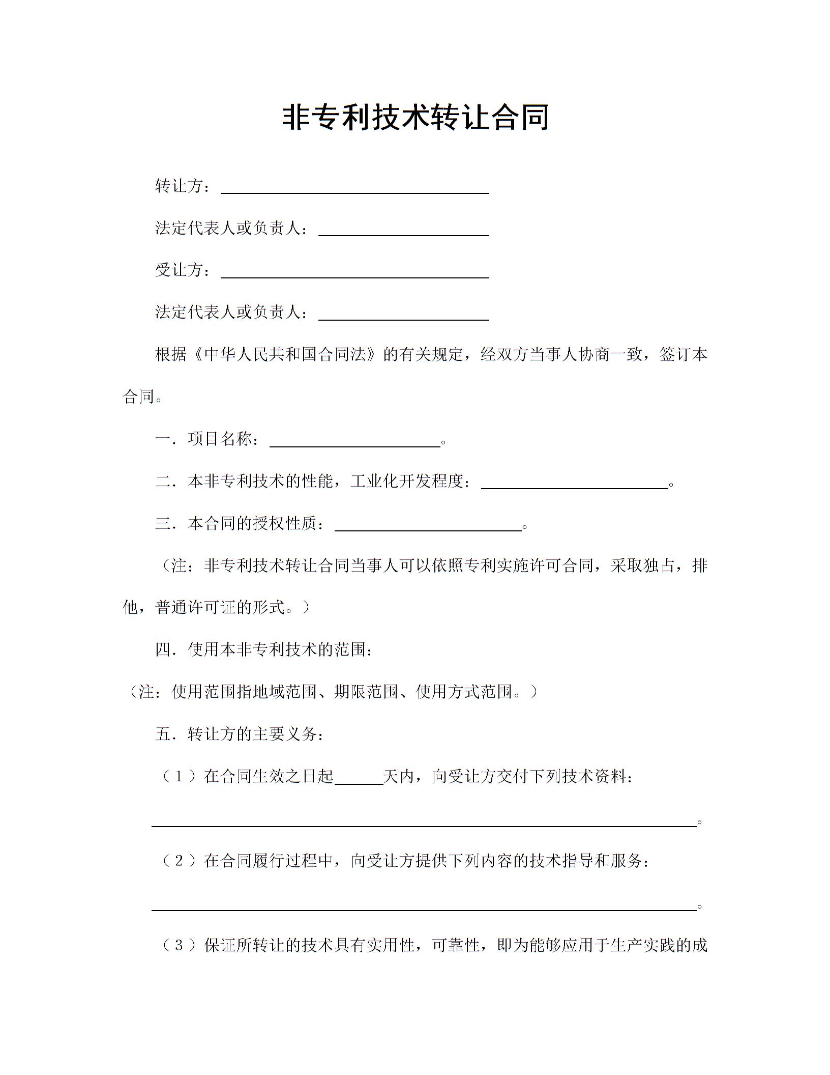 非专利技术转让合同